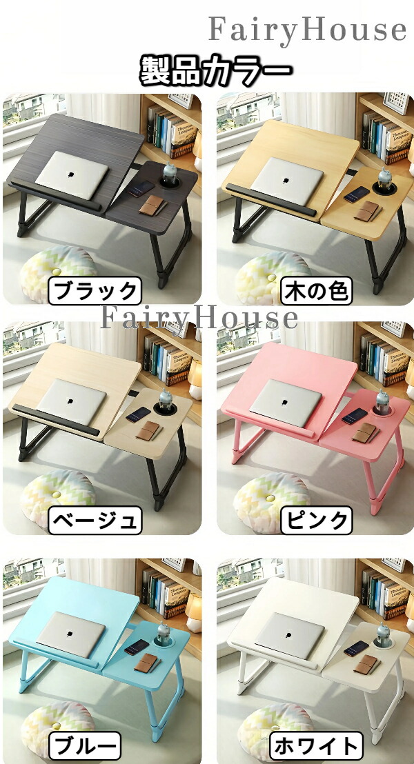 5段階調節可能なカップホルダー付きアン ホワイト ブラック 木の色 ベージュ ピンク