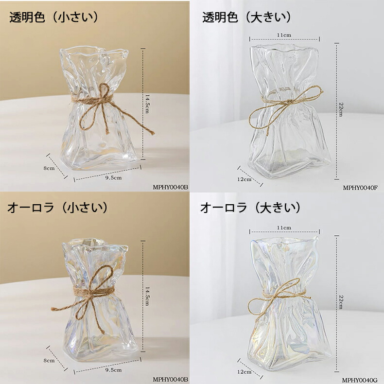 花瓶 おしゃれ フラワーベース ランダ 透明色(小さい) オーロラ(小さい) ホワイト(小さい) 透明色(大きい) オーロラ(大きい) ホワイト(大きい)
