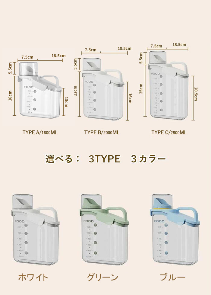 フードストッカー 密閉ペットフードスト ホワイト グリーン ブルー 1600ML 2000ML 2800ML