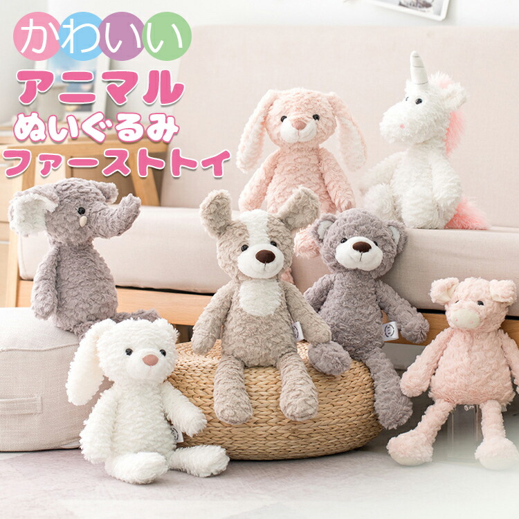 ぬいぐるみ ふわふわ ファーストトイ おもちゃ ぬいぐるみ 新作 クマ-グレー ウサギ-ピンク 犬-ベージュ ぞうさん-グレー ウサギ-白 ユニコーン-白 乳牛-白