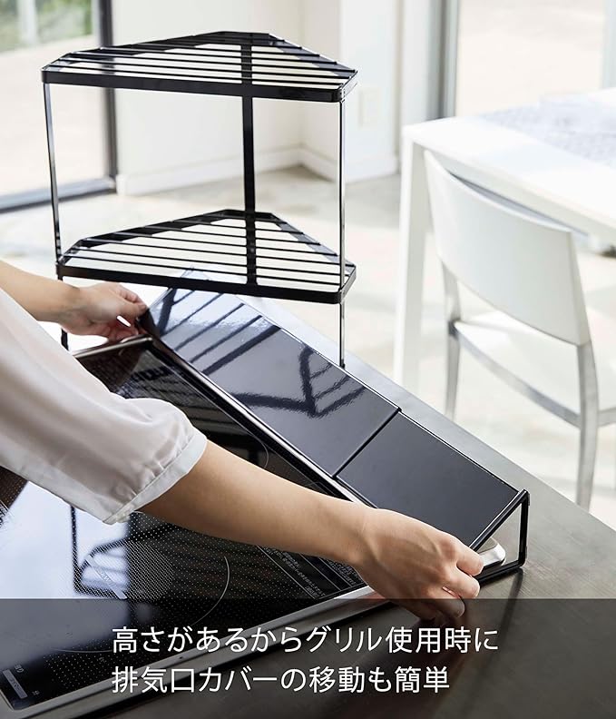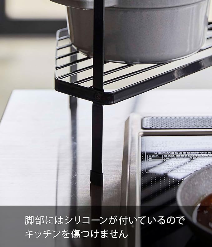 キッチンコーナーの鍋やフライパン用の階 キッチン用品 食器 調理器具 豊富 ホワイト ブラック