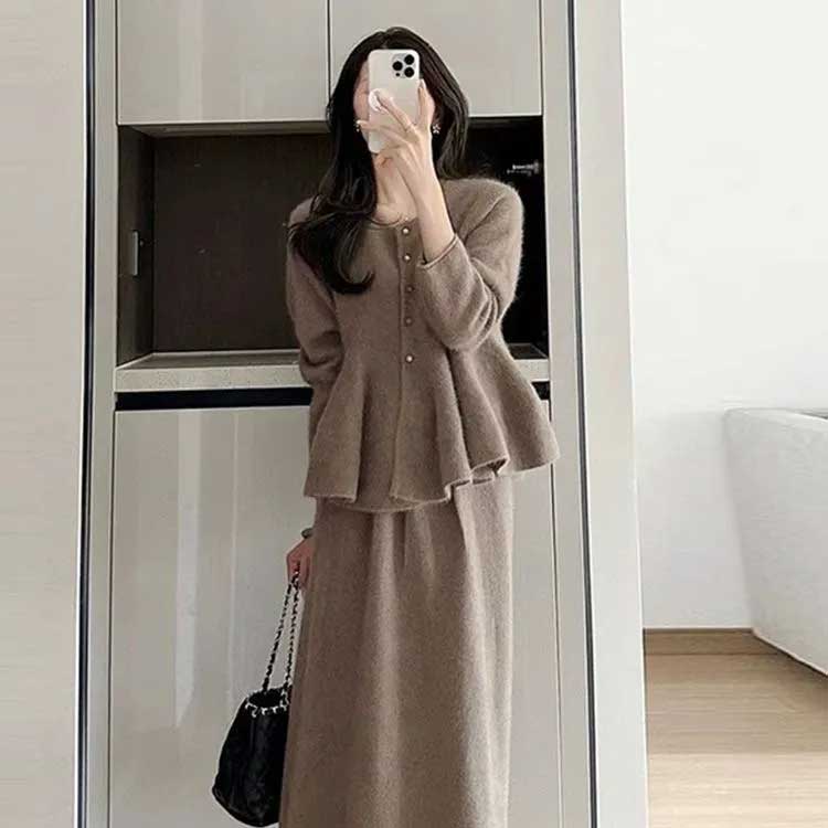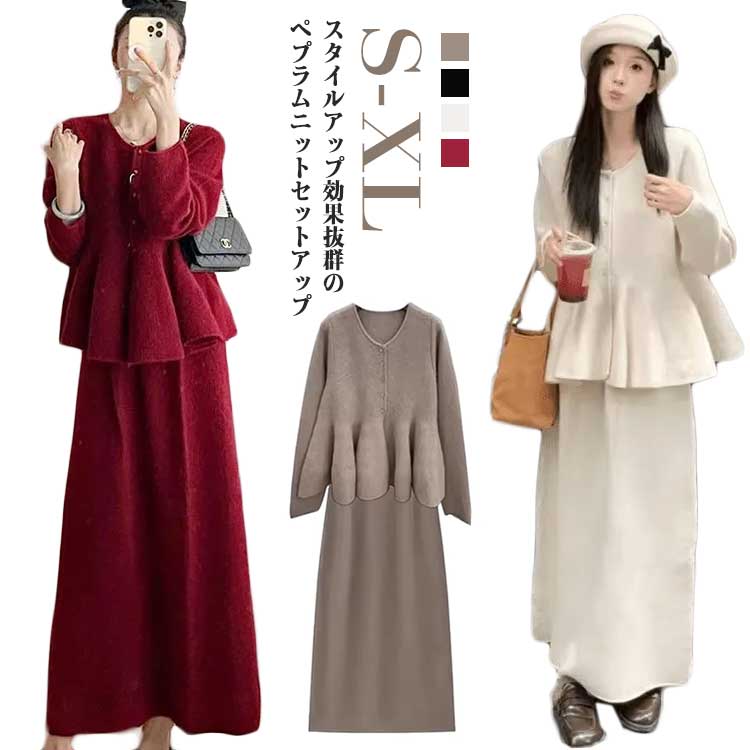 ニットセットアップ ペプラムニット 上 レディースファッション 早い者勝ち!ポイントUP レッド上下 モカ上下 ブラック上下 ベージュ上下 S M L XL