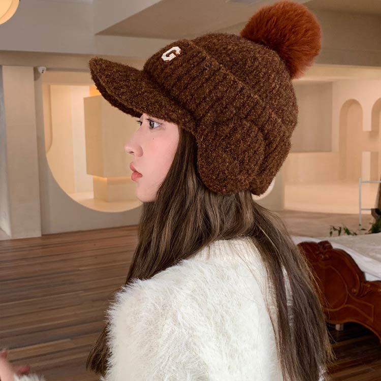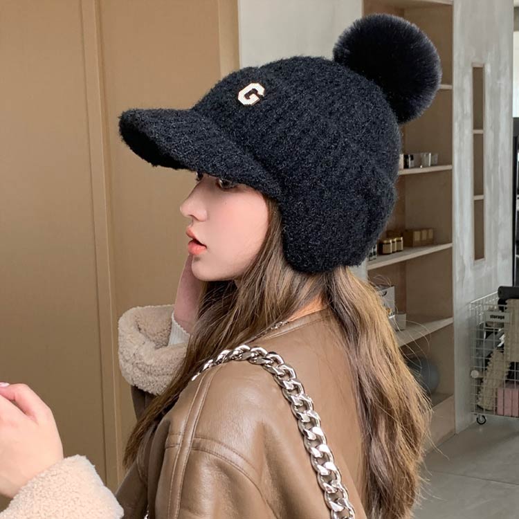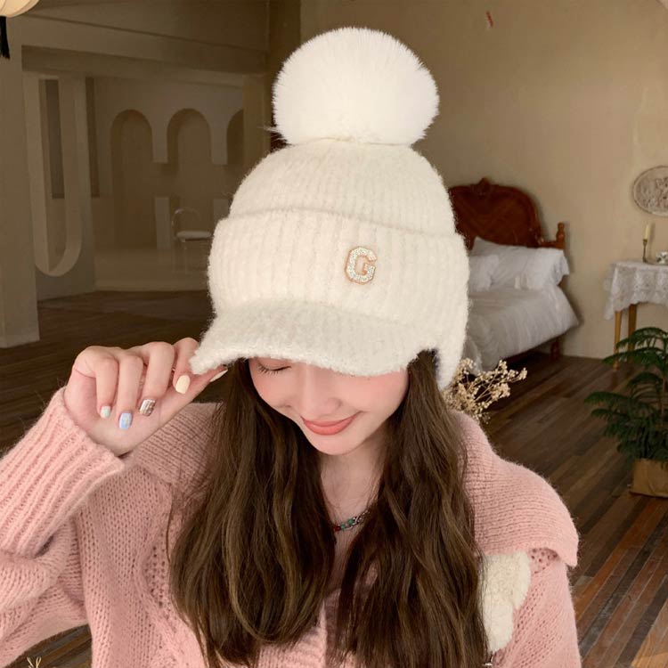 おしゃれ かわいい ボンボン ニット帽 つば付き 帽子 ゴルフキャップ 耳当て レディース ニットキャップ 韓国