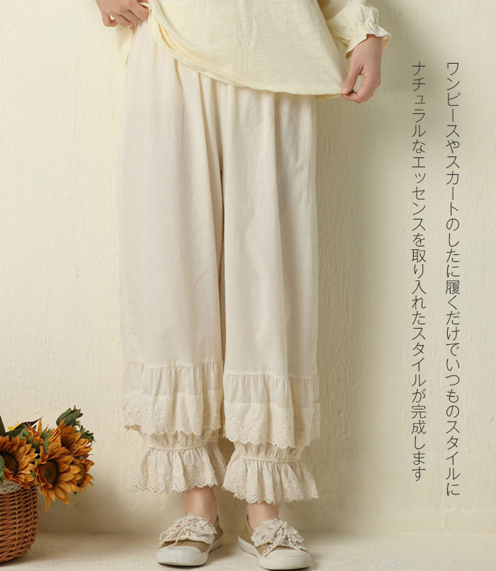 ペチパンツ レース 刺繍 ロング パン レディース インナー 下着 ペチコート 特集 ホワイト ブラック アイボリー ブラウン