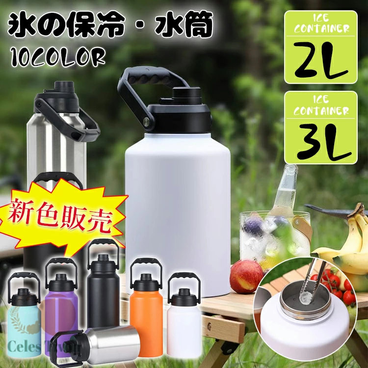 アイスコンテナ 2.0L 3.0L ウ 弁当箱 水筒 水筒 マグボトル 通販 コーヒー ホワイト ブラック カーキ ネイビー 黒+白 シルバー オレンジ パープル ブルー 2.0L 3L