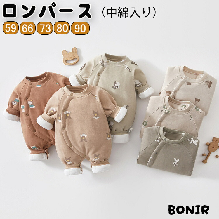 ロンパースベビー新生児59-90cm秋冬中綿入り長袖カバーオール綿100赤ちゃん服出産祝い防寒外出着男の子女の子パジャマ部屋着カバーオール