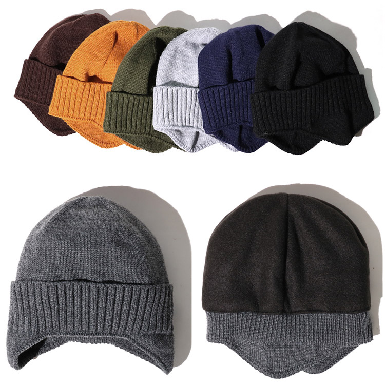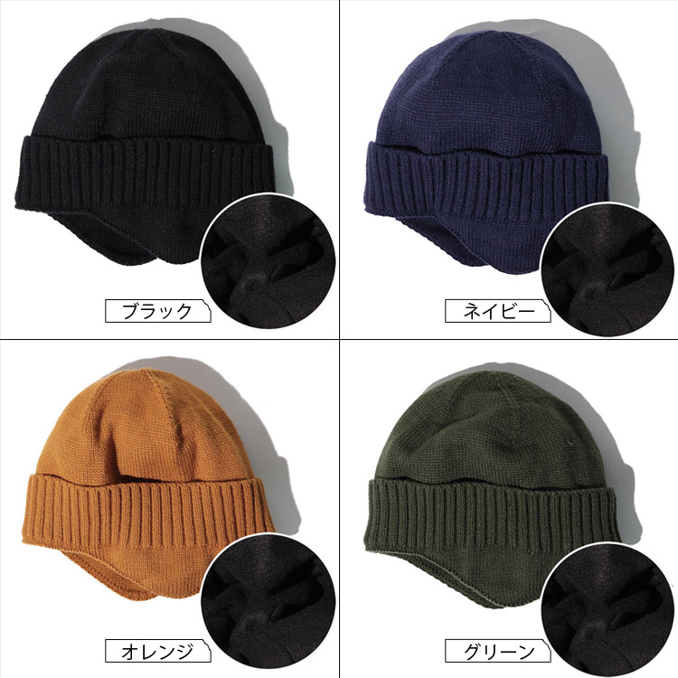 帽子旅行アウトドア冬防寒保温厚手耳あて付メンズ男旅男性大人大人用シンプルニットニット帽キャップモダン外出秋ブラックネイビーキャメルグリーンブラウングレー
