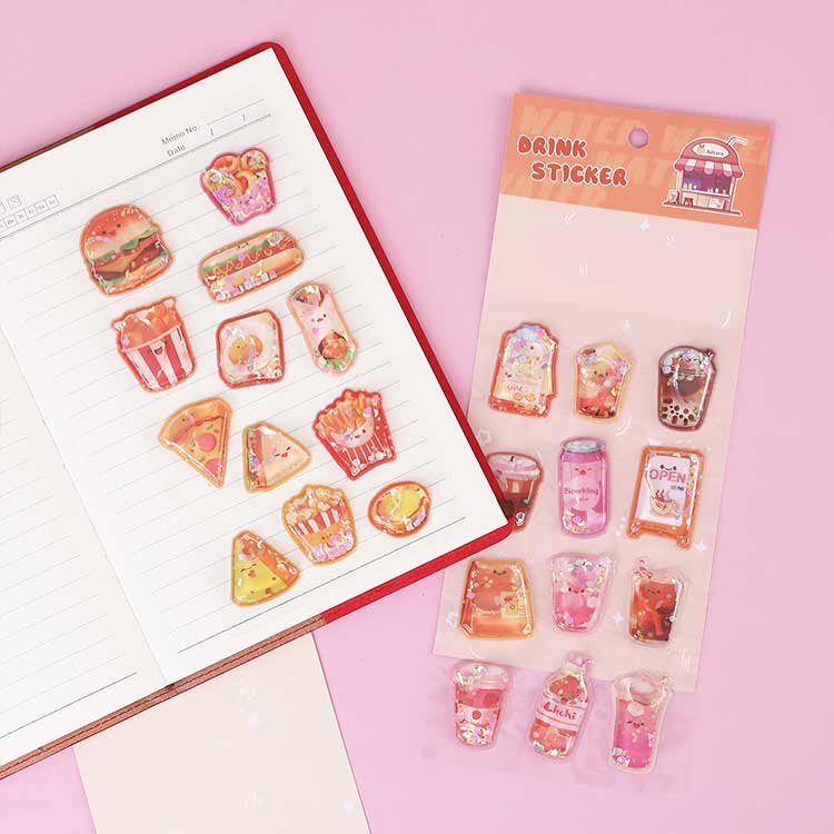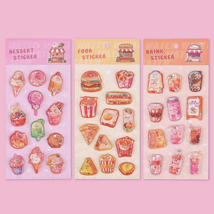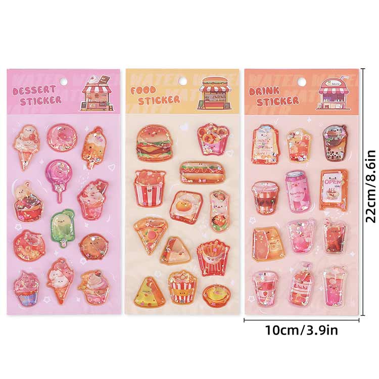 3枚入り 水入りシール 食べ物 ウォーターシール 飲み物 ドーナツ 女の子 立体シール ウォーターインシール ケーキ シール帳 デコシール ぷくぷくシール 3D ステッカー 立体 3Dシ サンドイッチ