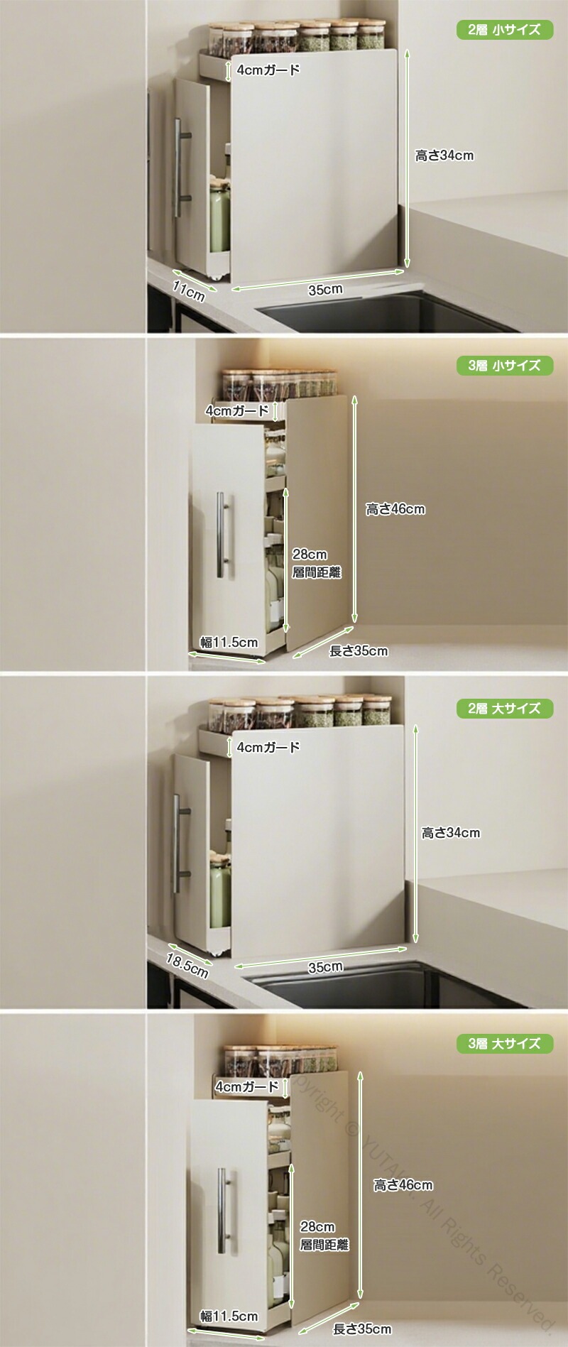 調味料ラック スリム 2段 引き出し式 キッチン用品 食器 調理器具 期間限定ポイントUP! 2層 小サイズ 3層 小サイズ 2層 大サイズ 3層 大サイズ