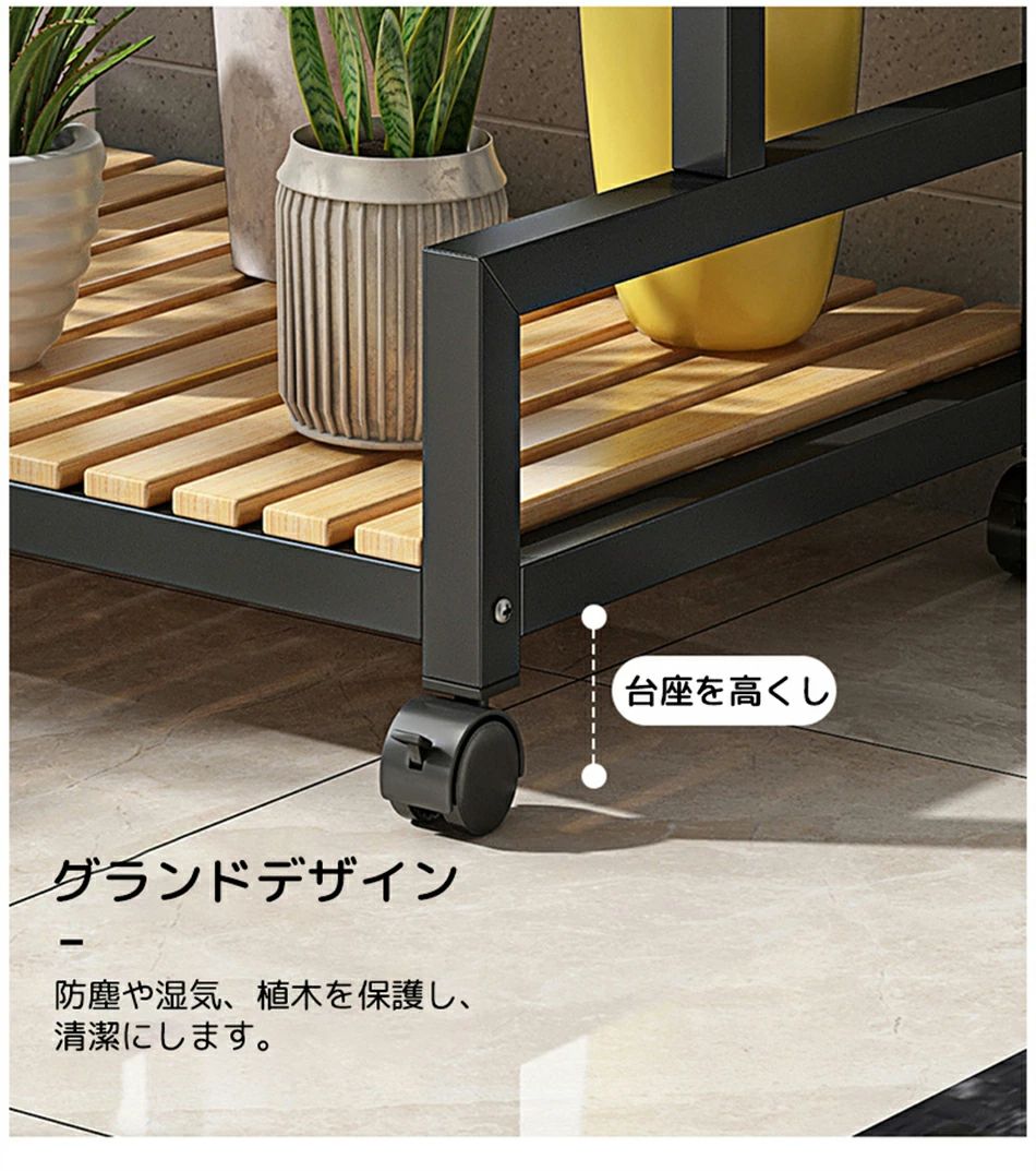 【プランタースタンド】フラワースタンド 屋外 室内,プランター スタンド材質:炭素鋼フレーム+炭化木材パネル,植木鉢 台採用スチール製キャスター,植木鉢 スタンド組立:観葉植物 スタンド,簡易組立式。