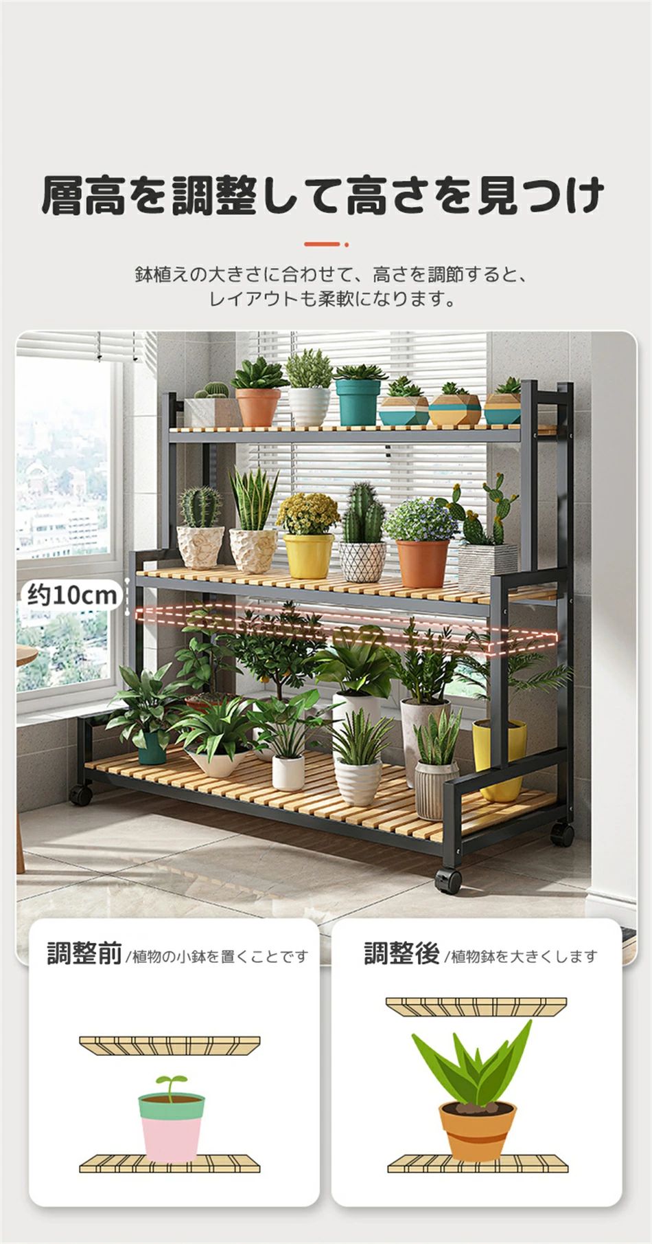 【大容量使い勝手の良さ】園芸 棚,自由に調整可能です,プランターの高さ違いに対応,観葉植物 棚 室内 おしゃれ,3段の大容量,花台 室内,採用されたユニバーサルムービングプーリー、自由に動くことができ,園芸ラック,組み立簡単で、短時間で設置が完了し、設置用の工具をご用意しております。