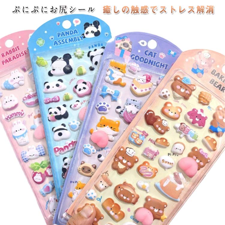 立体シール ぷにぷにお尻シール おしりシール 3D立体シール シール手帳 キャラクター おしりぷにぷに もちもち もっちりスクイーズ ふわふわ ぷっくり 可愛い ご褒美シール ぷにぷにお尻 3Dシール
