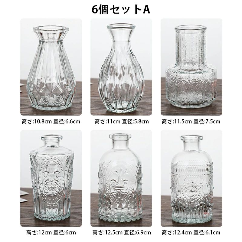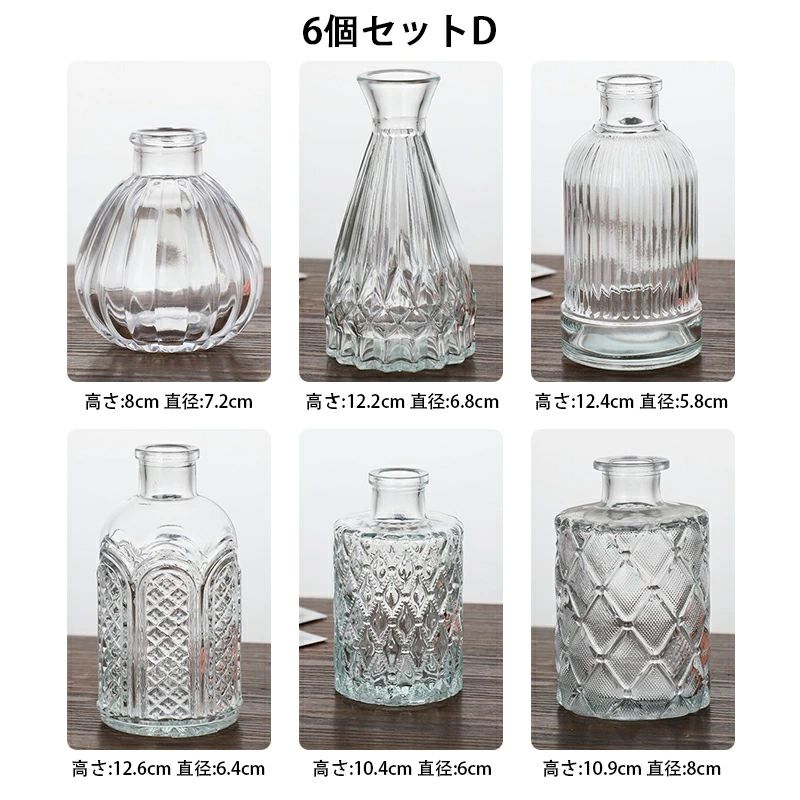 ガラスつぼ花瓶 小さなフラワーボトル 6個セットA 6個セットB 6個セットC 6個セットD 6個セットE 6個セットF 6個セットG