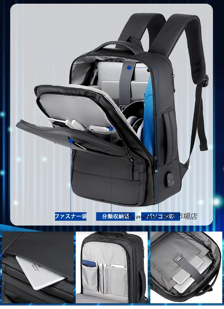 ビジネスリュック 防水 ビジネスバック メンズ 大容量バッグ 拡張バックパック USB充電 パソコン収納 鞄