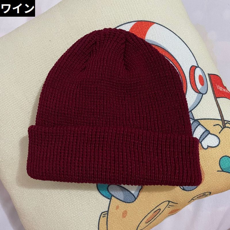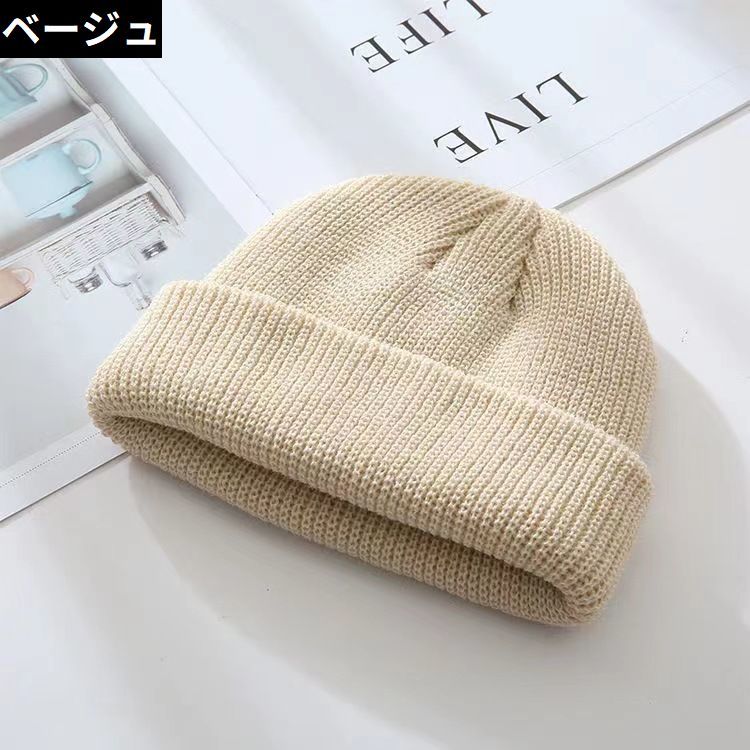 男女兼用フリ シンプル 無地 秋冬 保温 暖かい 防寒 浅め ビーニー リブニット 帽子 レディース ワッチキャップ ニット帽 メンズ