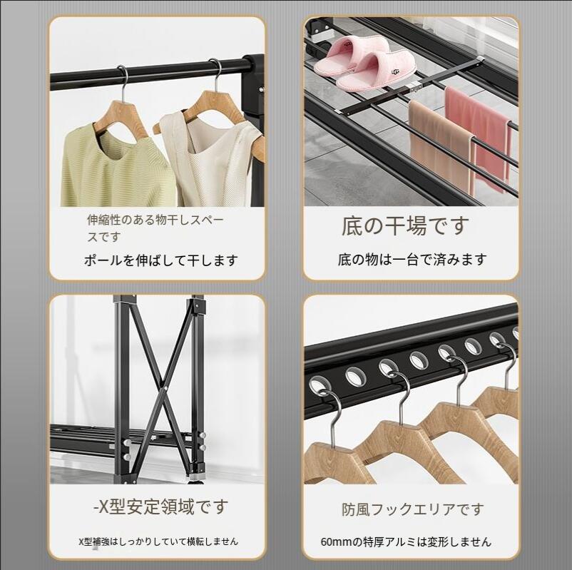 強化版 長さ調節可能 省スペース 大容 洗濯用品 物干しスタンド 続々登場 ブラック ピンク シルバー 高さ1.19m 高さ 伸縮性1.2-1.45m