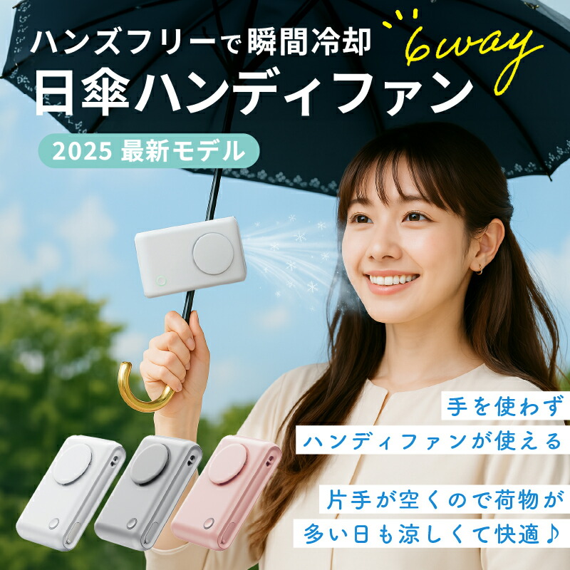 日傘に取り付け可能!シーンに合わせて使える6WAYハンディファンです。