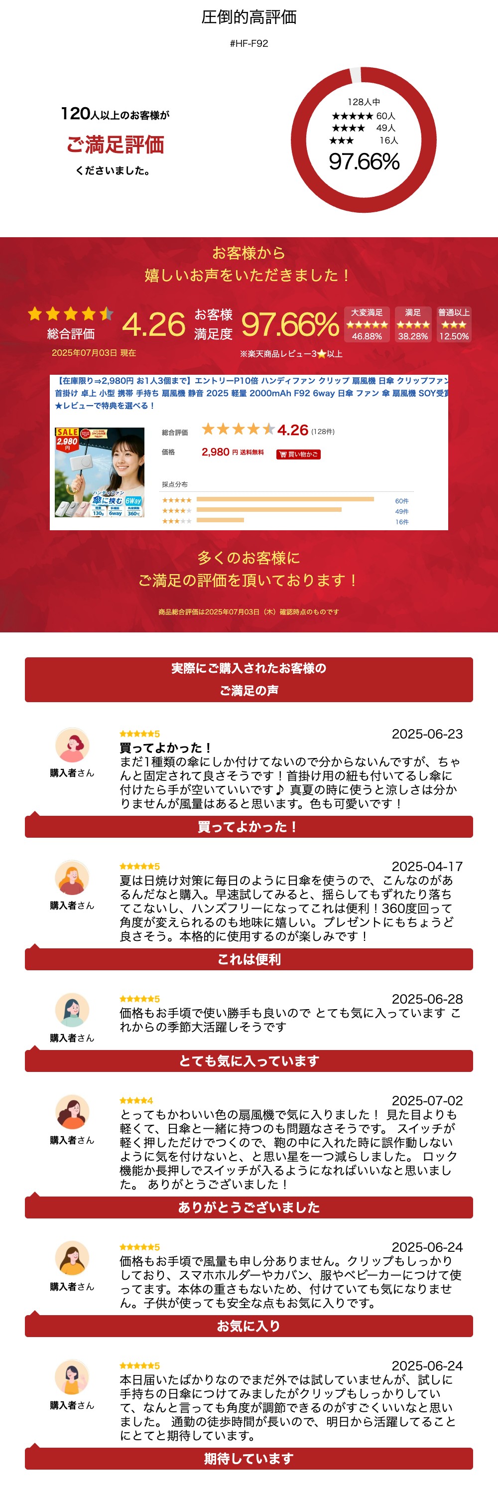 エントリーP10倍 ハンディファン クリップ 扇風機 日傘 クリップファン 首掛け 卓上 小型 携帯 手持ち 静音 2025 軽量 2000mAh 6way ファン 傘 F92