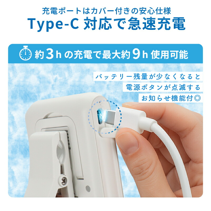 ・最大約9時間の連続使用が可能です。長時間の外出や屋外イベントでも快適に使用できます。