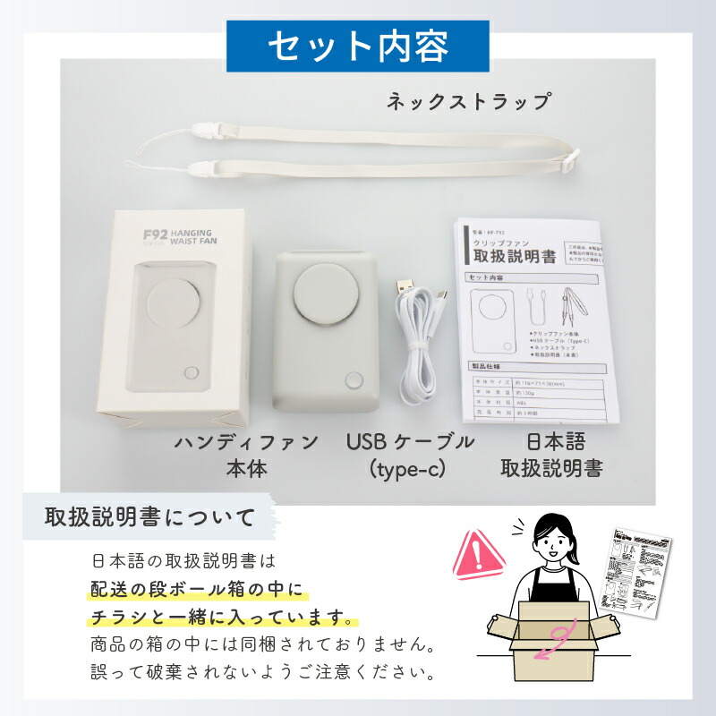 本体 / USBケーブル(type-c) / ネックストラップ / 日本語取扱説明書
