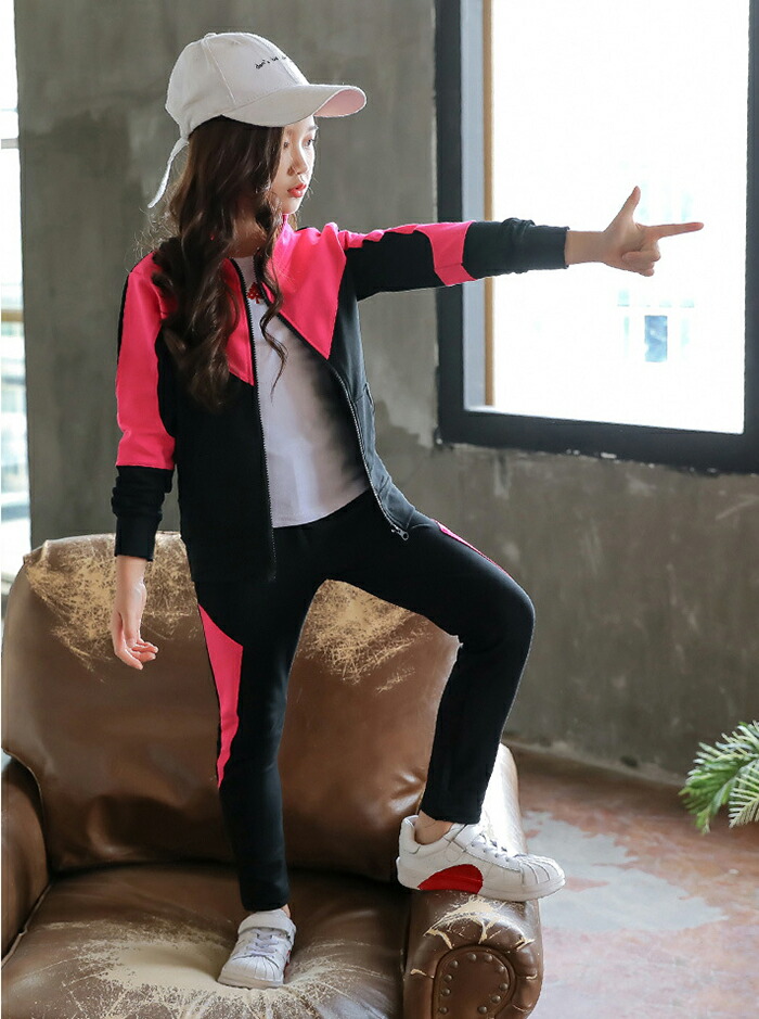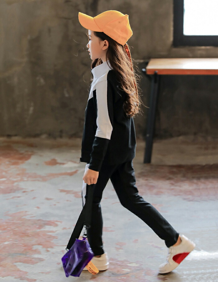 キッズ ジャージ上下セット セットアップ 女子 長袖 春秋 秋着 韓国風 ジュニア ジャージ 女の子 子供服 シンプル パーカ 長ズボン スポーツウェア 2点 細身 部活 クラブ活動 ダ 体育