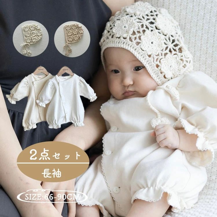 セレモニーロ 退院着 ベビー 冬 長袖 ベビー ベビー服 ファッション 下着 パジャマ パジャマ 期間限定ポイントUP! ベージュロンパースのみ ホワイトロンパースのみ ベージュ2点セット ホワイト2点セット 66cm 73cm 80cm 90cm