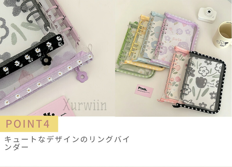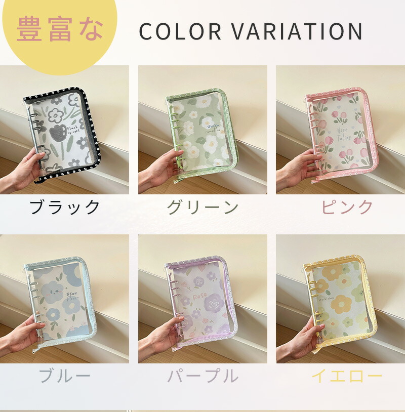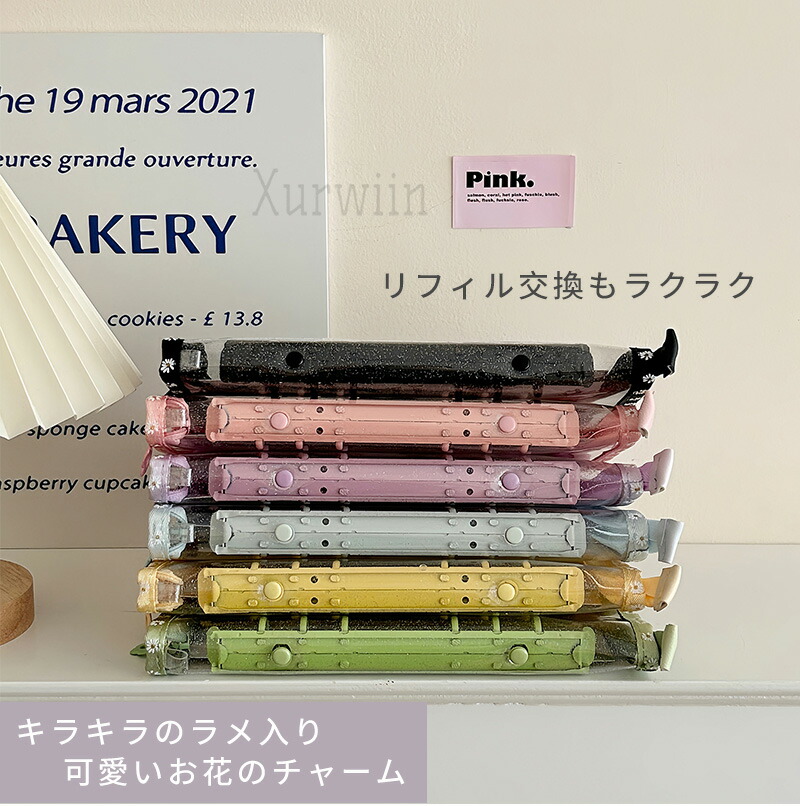 手帳 リング付き ins バインダー 日用品雑貨 文房具 手芸 期間限定割引クーポン ブラック グリーン ピンク ブルー パープル イエロー
