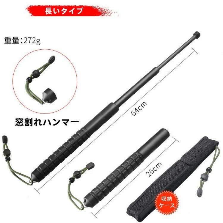 3段伸縮式護身用スティック 窓割れハン 登山 トレッキング トレッキングポール 人気 普通タイプ 長いタイプ