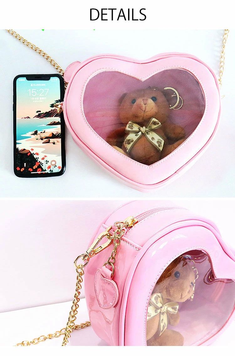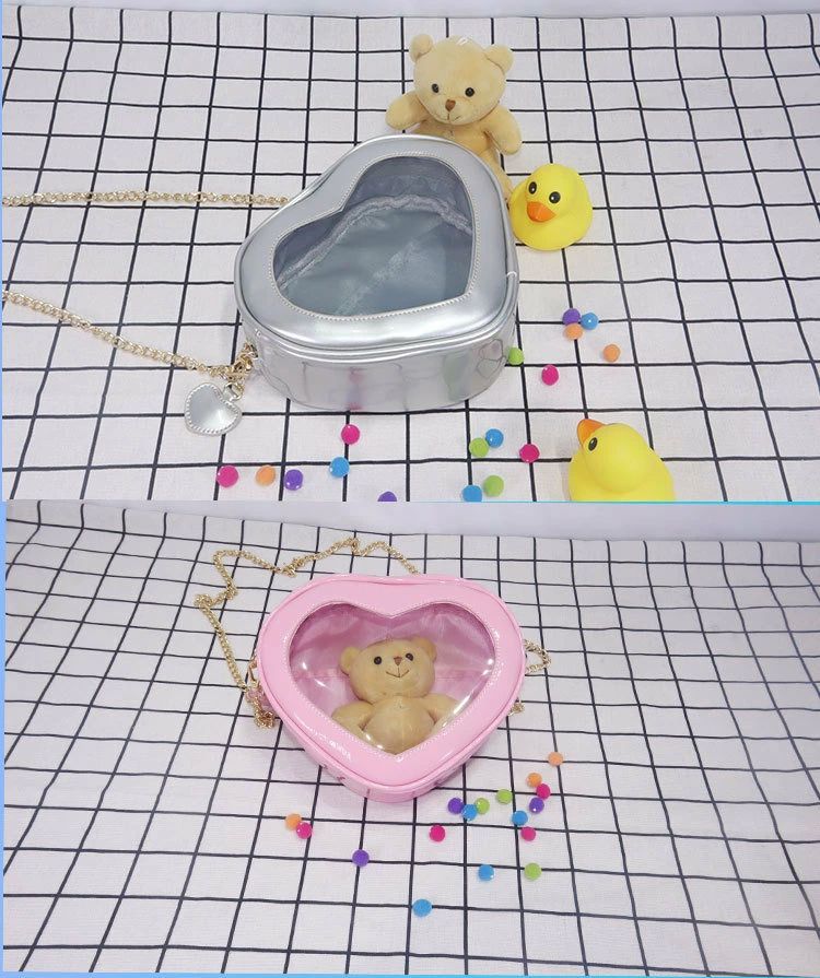 推し ぬいぐるみ クリアバッグ 透明窓 バッグ 小物 ブランド雑貨 新作 シルバー ピンク レッド