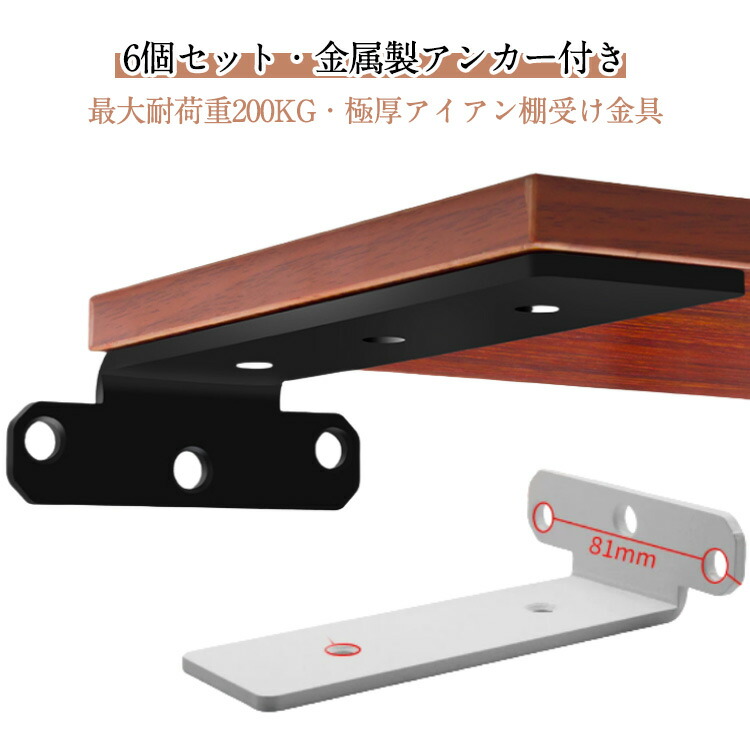 6個セット 隠し棚受け 高耐荷重 目立 黒(長さ150mm) 黒(長さ200mm) 黒(長さ250mm) 黒(長さ300mm) 白(長さ150mm) 白(長さ200mm) 白(長さ250mm) 白(長さ300mm)
