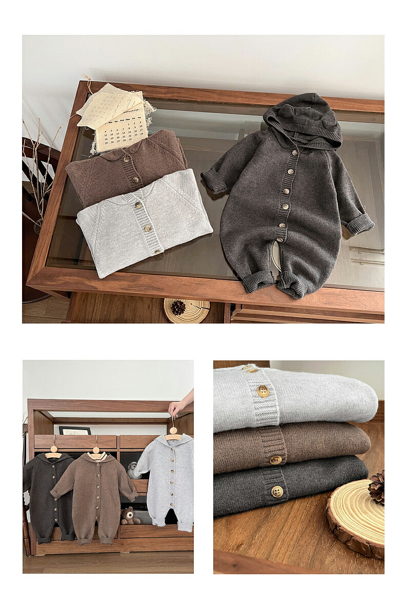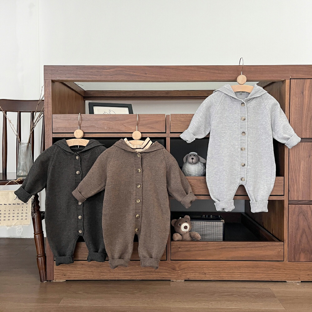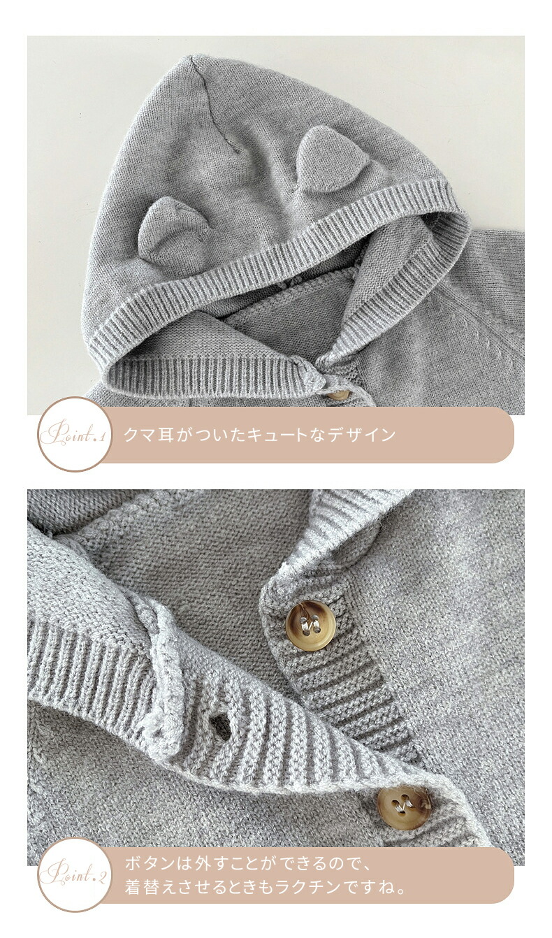 ロンパース 長袖 男の子 女の子 冬 ベビー ベビー服 ファッション カバーオール ロンパース 特集 ライトグレー ブラウン ダークグレー 66cm 73cm 80cm 90cm 100cm