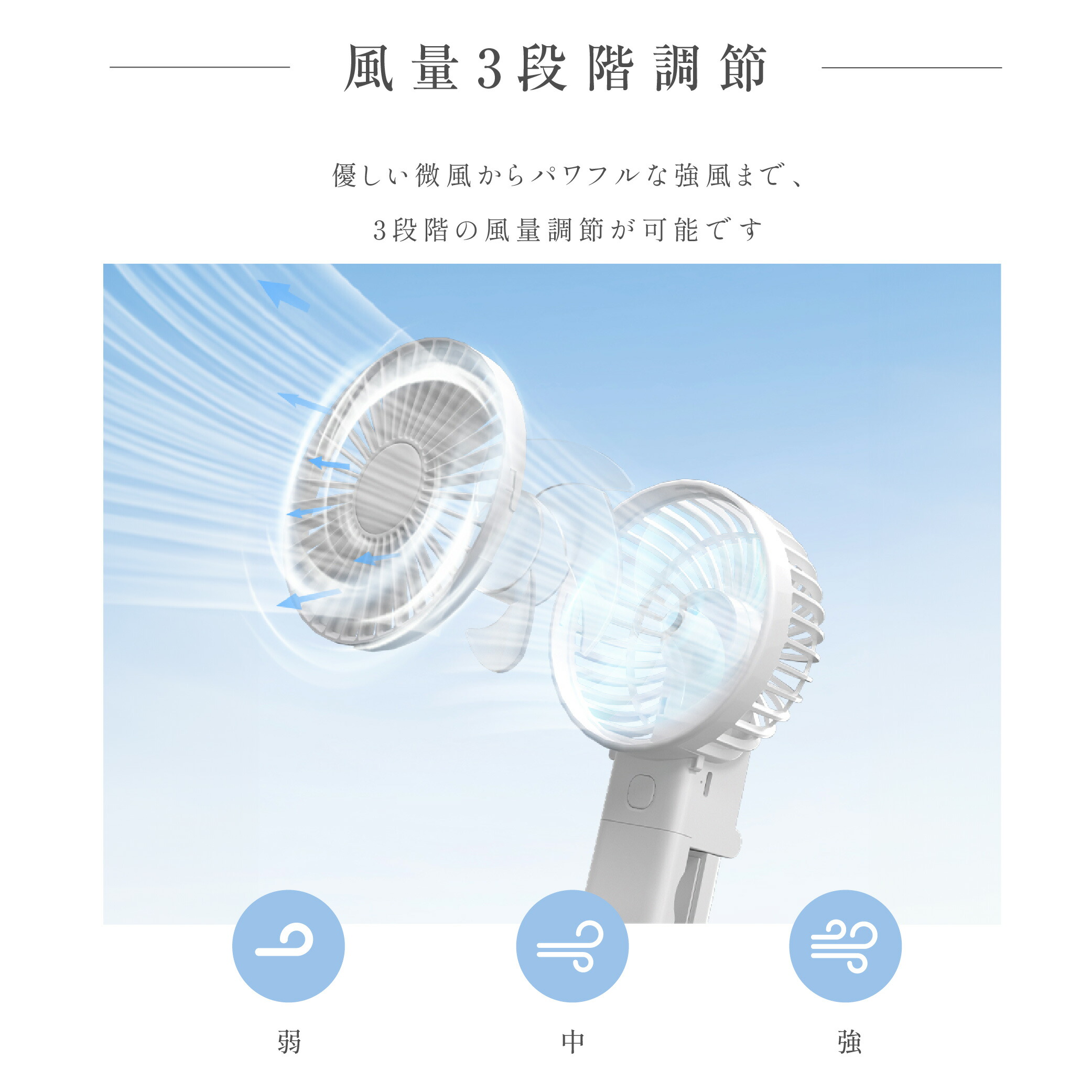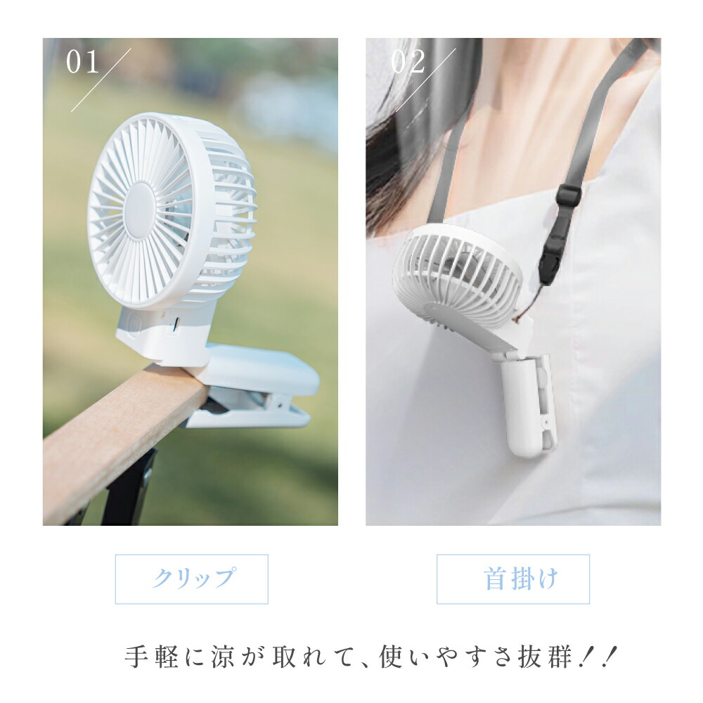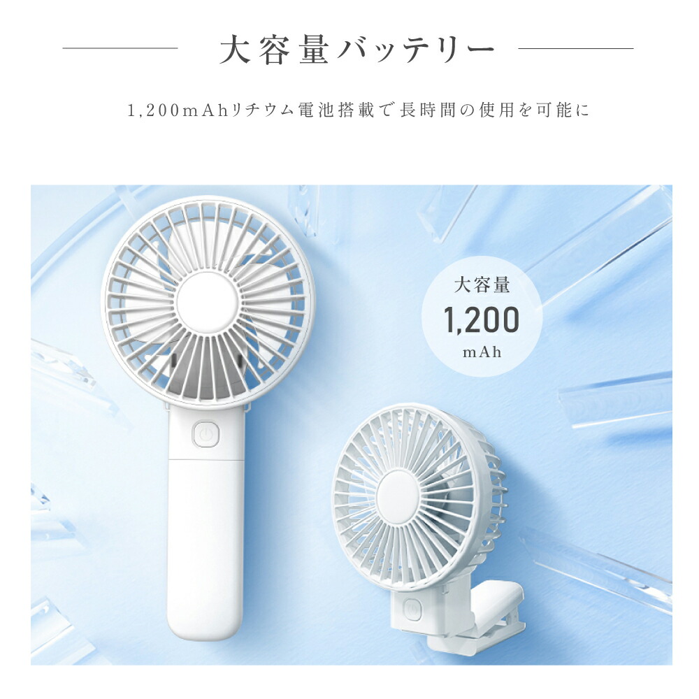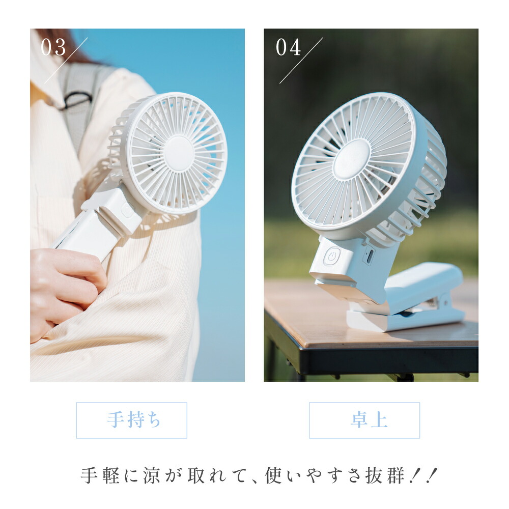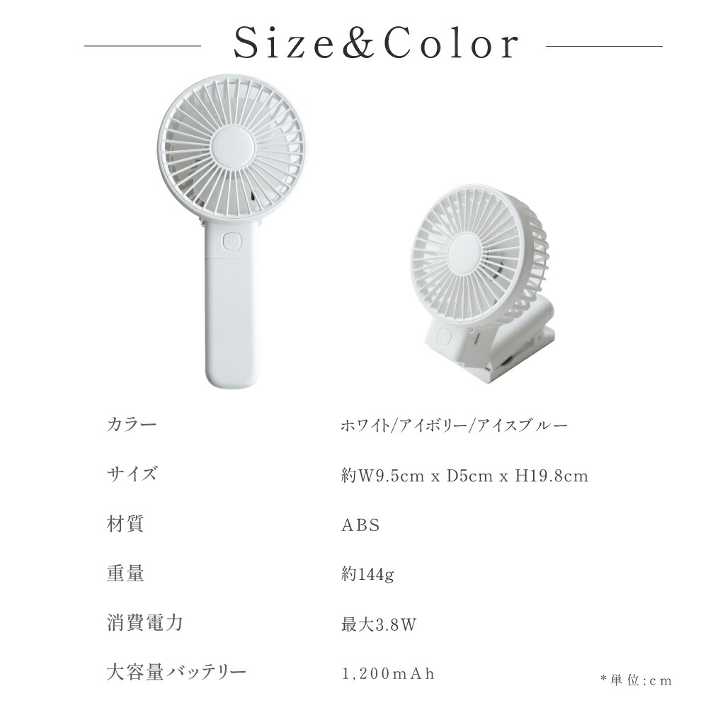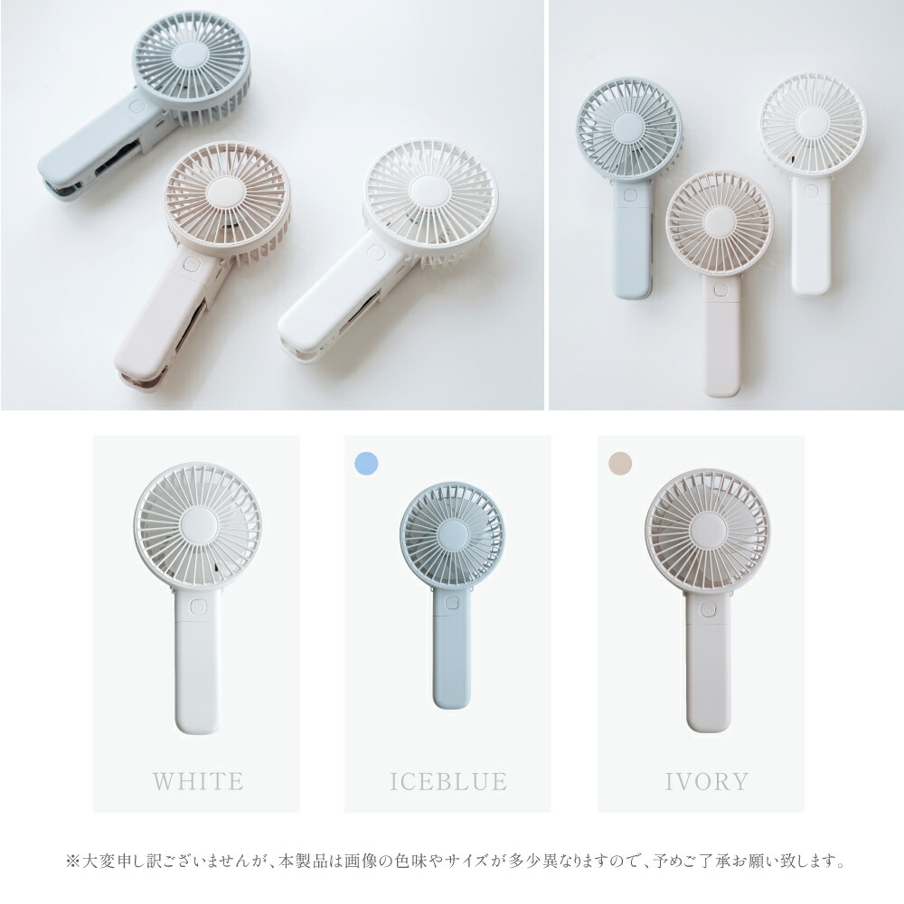 ハンディファン 静音 可愛い 充電式扇 ホワイト アイボリー アイスブルー