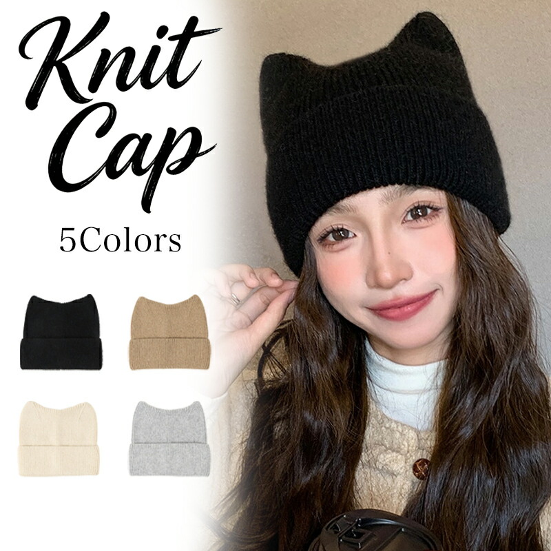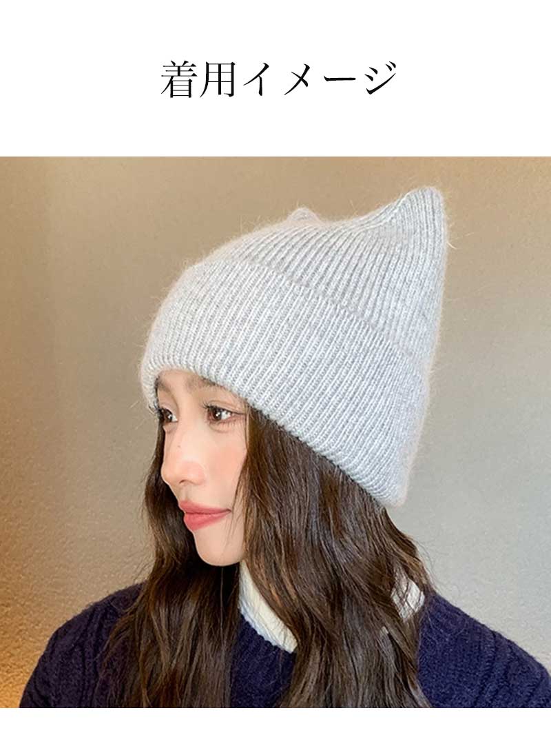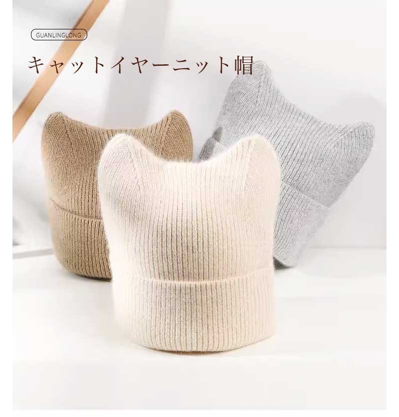 ニット帽 猫耳デザイン 猫耳ニット帽 帽子 レディース帽子 ニット帽 人気 ブラック カーキ ベージュ グレー