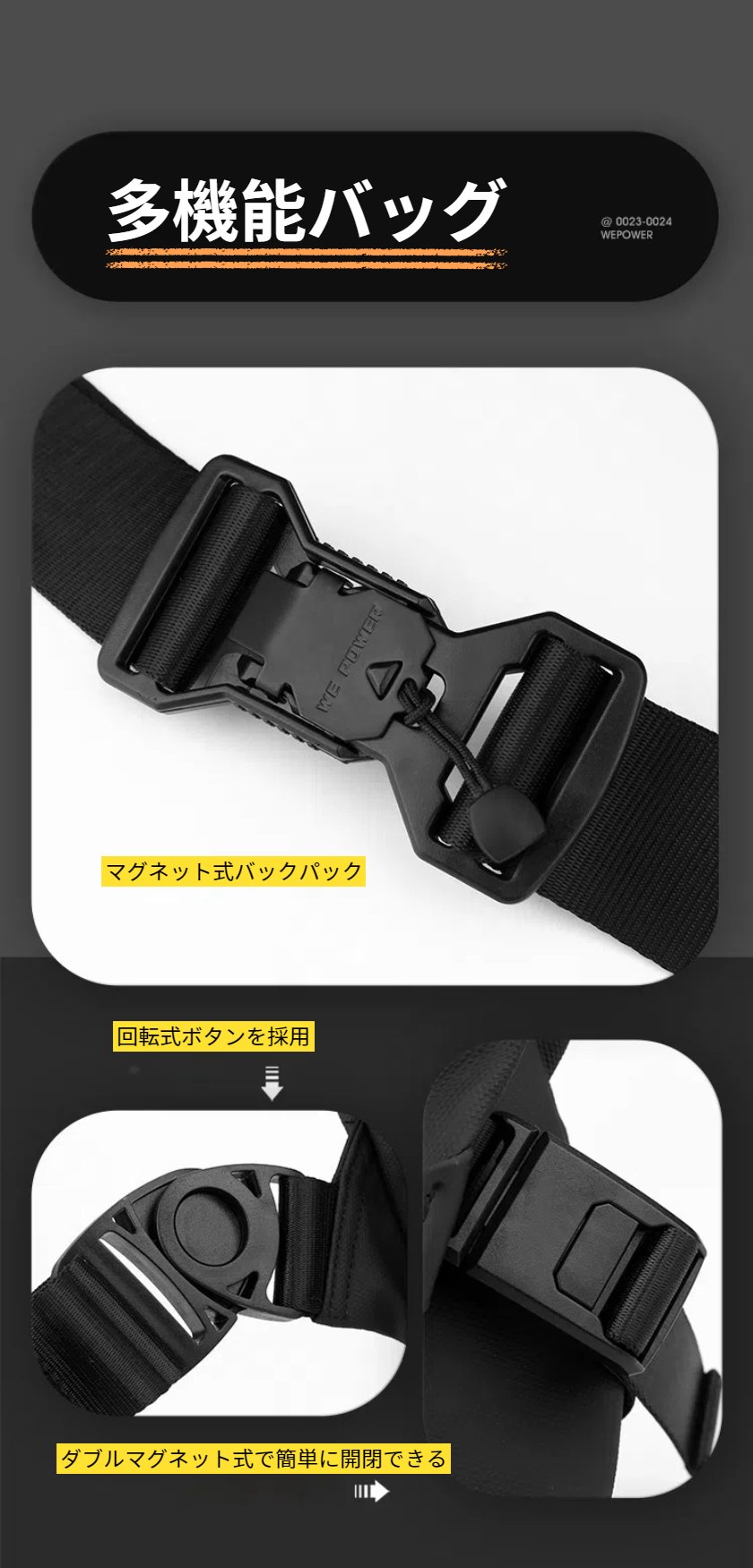 一部WE POWER メッセンジャーバッグ メンズ 多機能バッグ カッコイイ ワンショルダーバッグ 鞄 軽量 大容量 2way 斜めがけ 肩掛け アウトドア 盗難防止 撥水 丈夫 軽い カバ おしゃれ