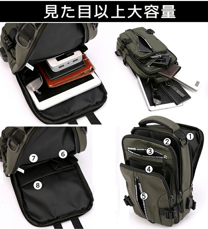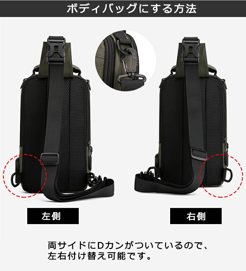 一部ボディバッグ メンズ 4way ショルダーバッグ ボディ-バッグ 斜めがけ 大容量 リュックサック 肩掛け USBポート付き 撥水 軽量 多機能 スマホ収納 通勤バ iPad対応