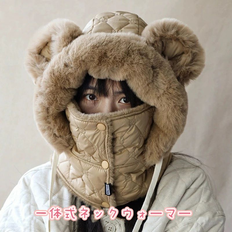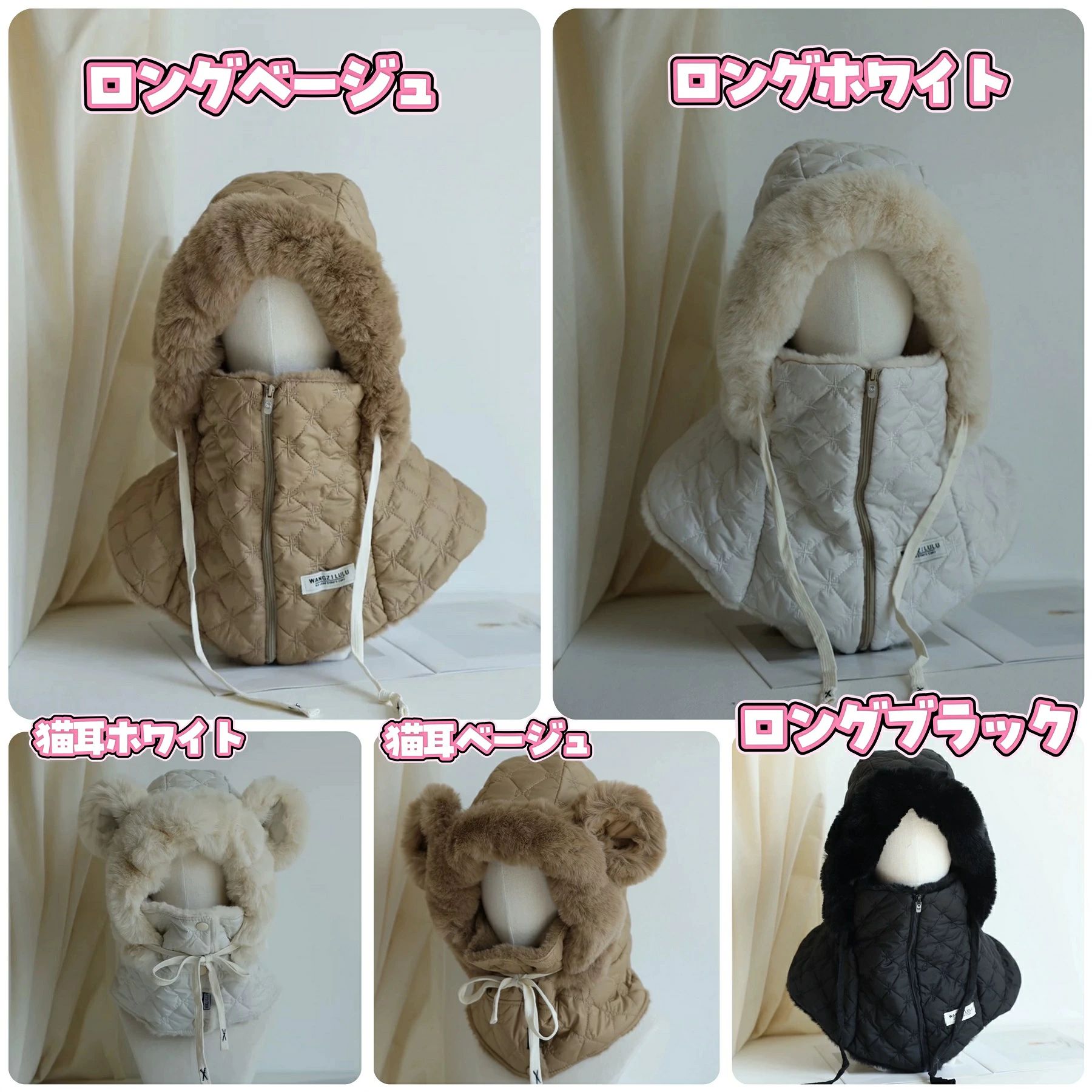 一体式ネックウォーマー フードウォーマ 帽子 レディース帽子 ニット帽 通販 ロング ブラック ロング ホワイト ロング ベージュ 猫耳 ホワイト 猫耳 ベージュ