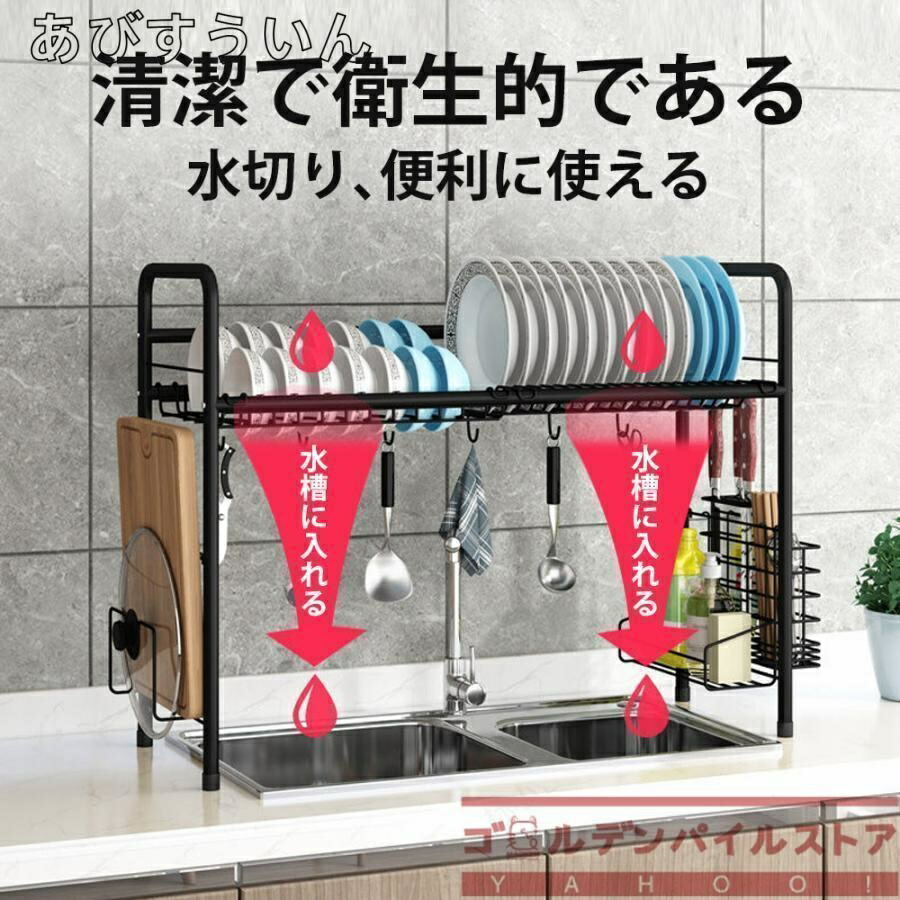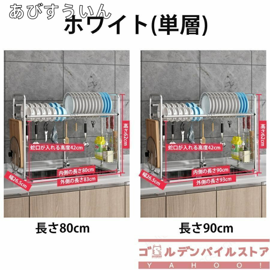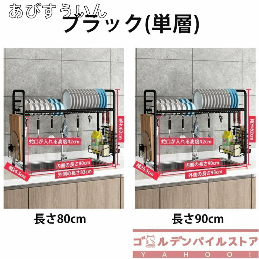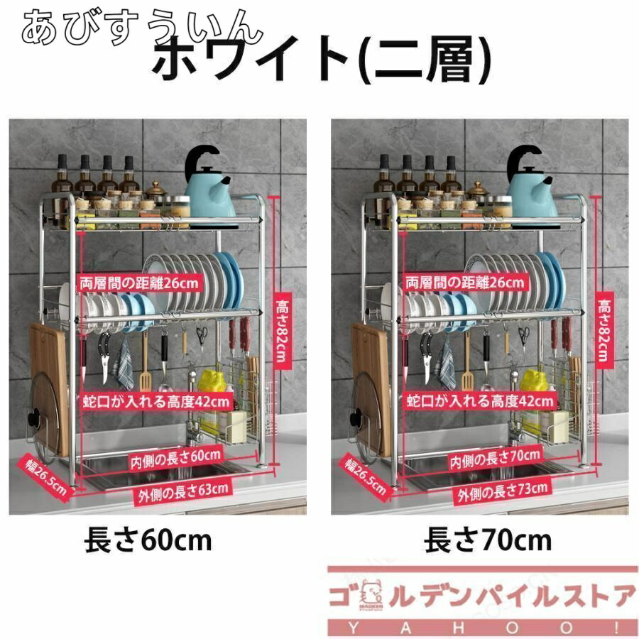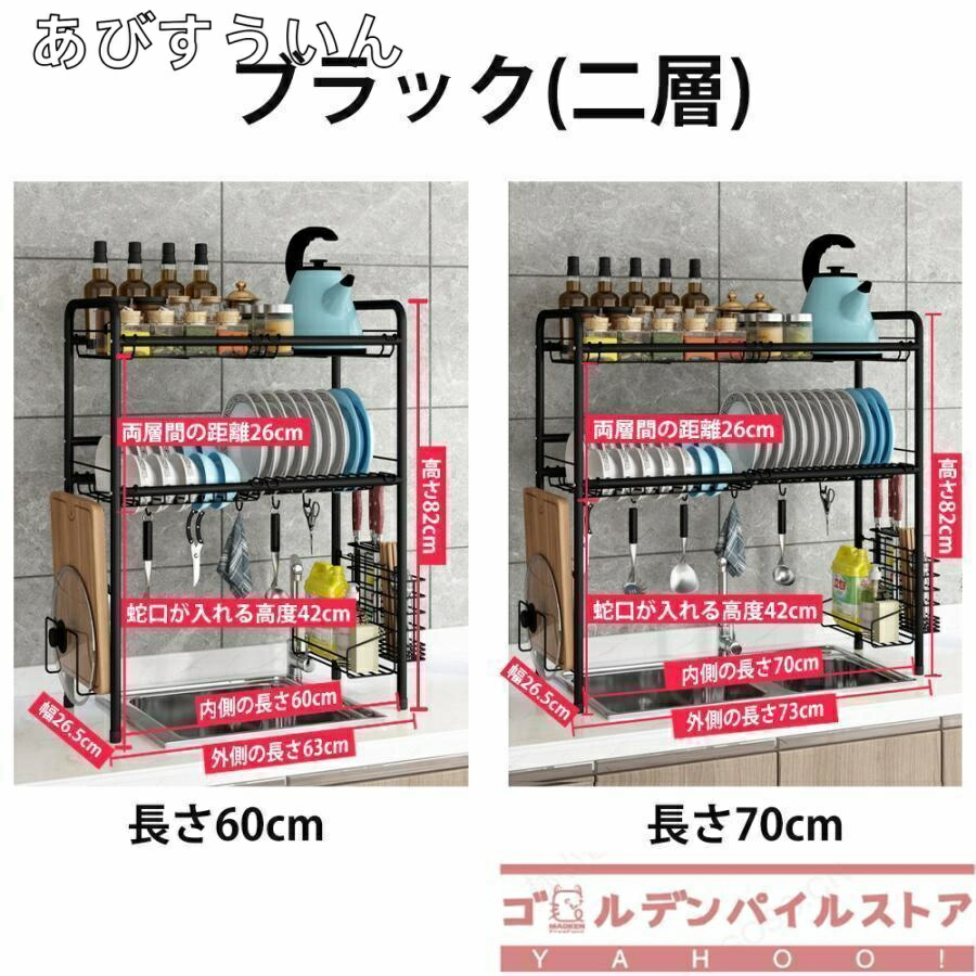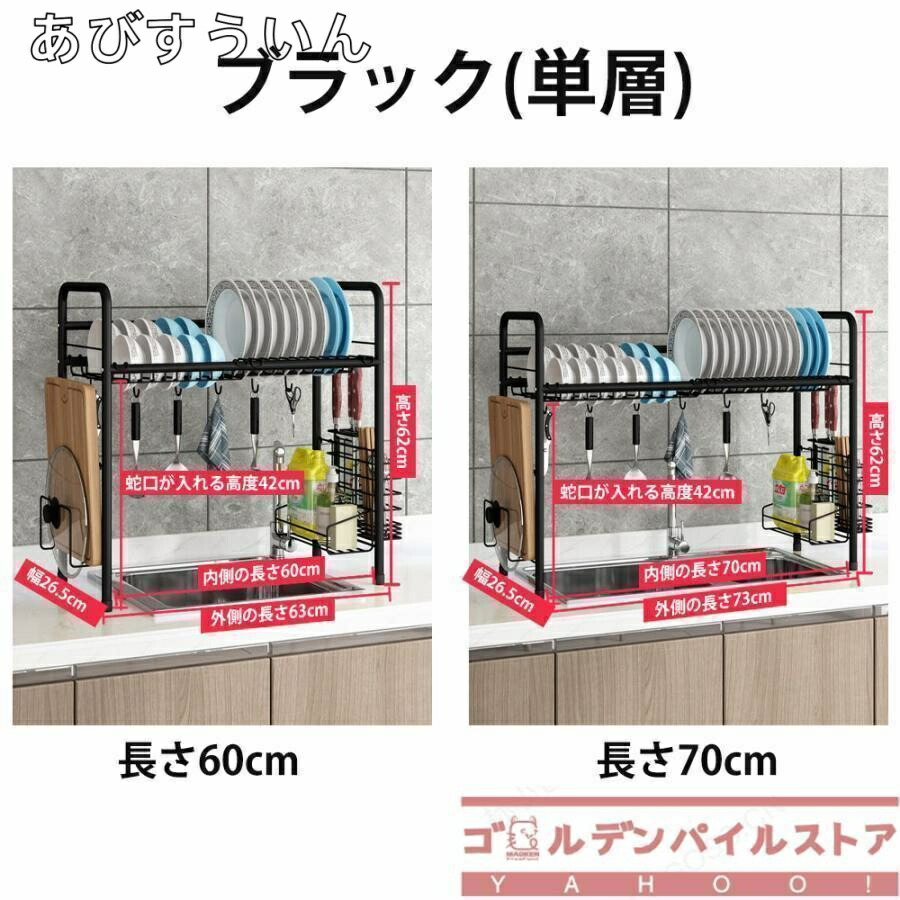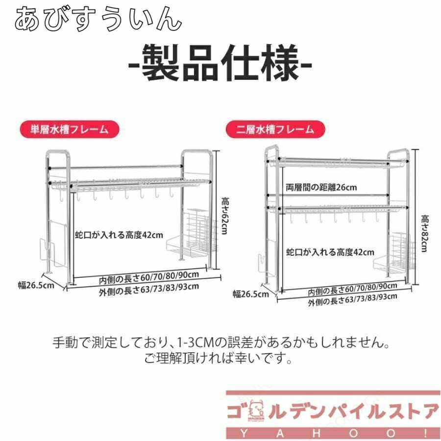 突っ張り 水切りラックシンク上 ステン キッチン用品 食器 調理器具 期間限定割引クーポン 一段式 2段式 50cm(ステンレスのみ) 60cm 70cm 80cm 90cm