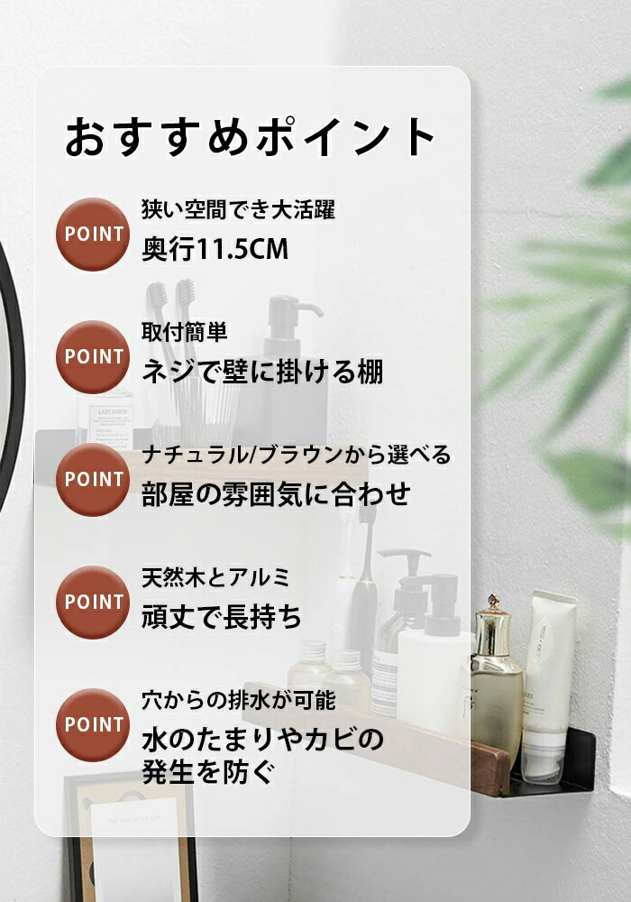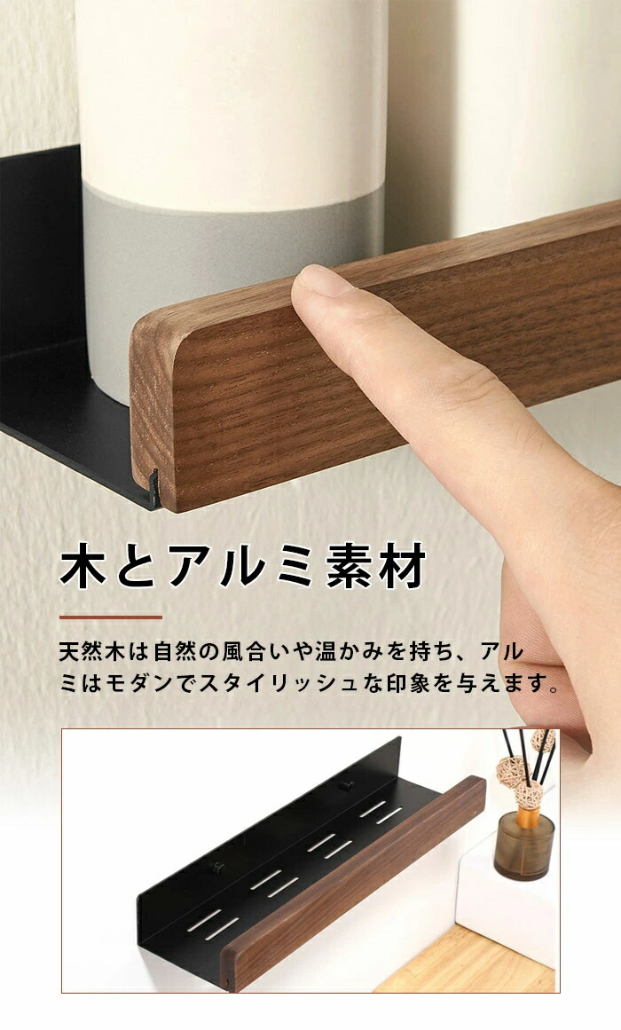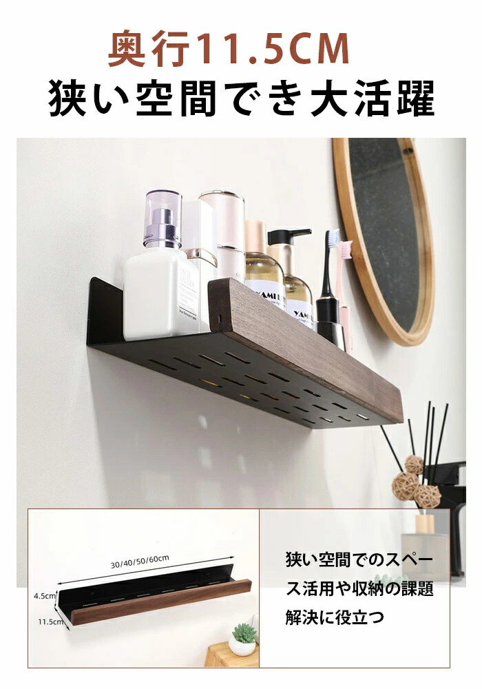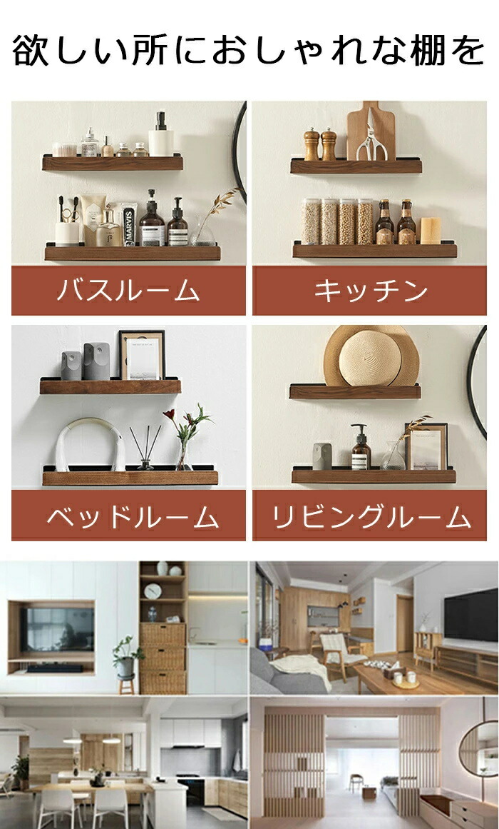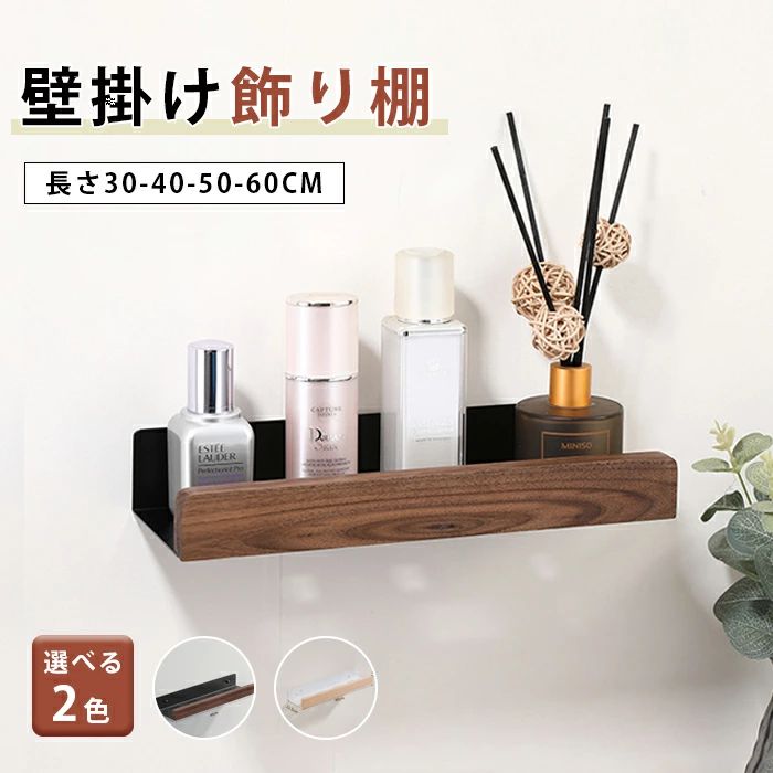 ウォールシェルフ 賃貸 おしゃれ 壁掛 ブラウン ナチュラル 30cm×1枚 40cm×1枚 50cm×1枚 60cm×1枚