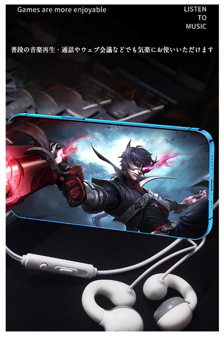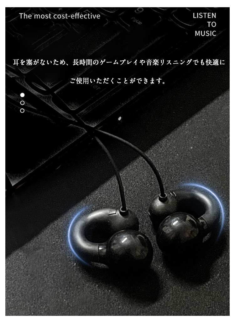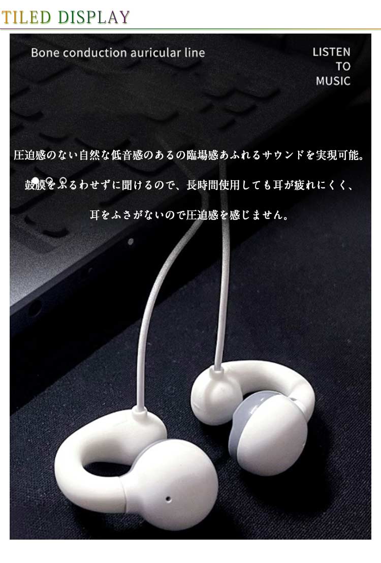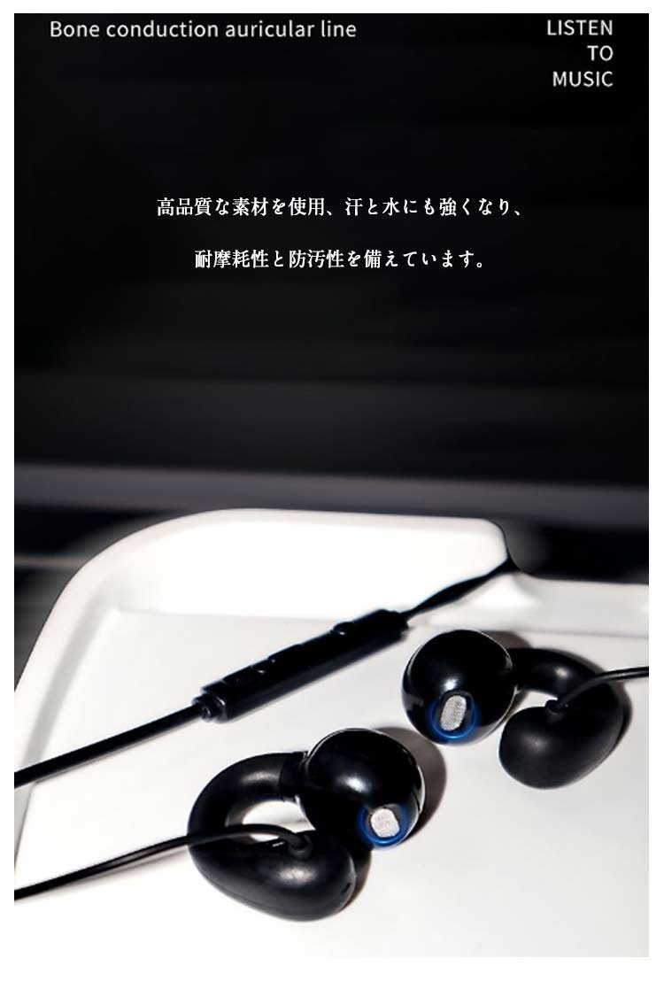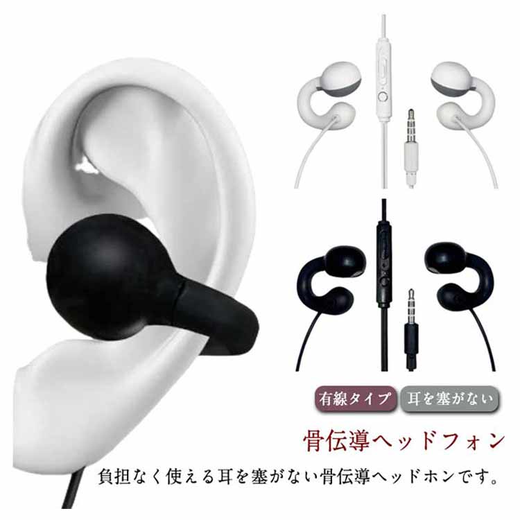 有線イヤホン マイク付き 骨伝導ヘッド ホワイト ブラック 1.5m 2m 3m