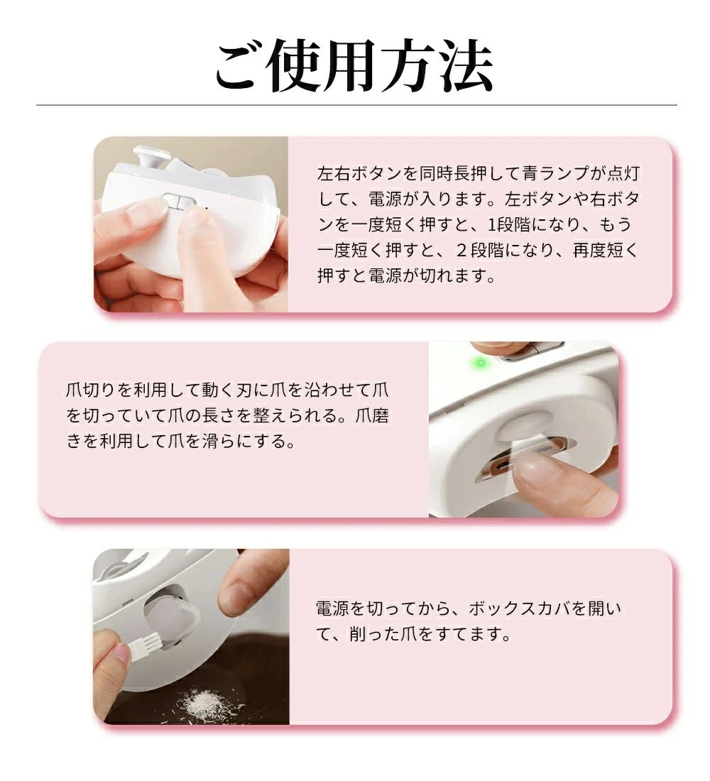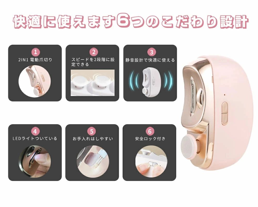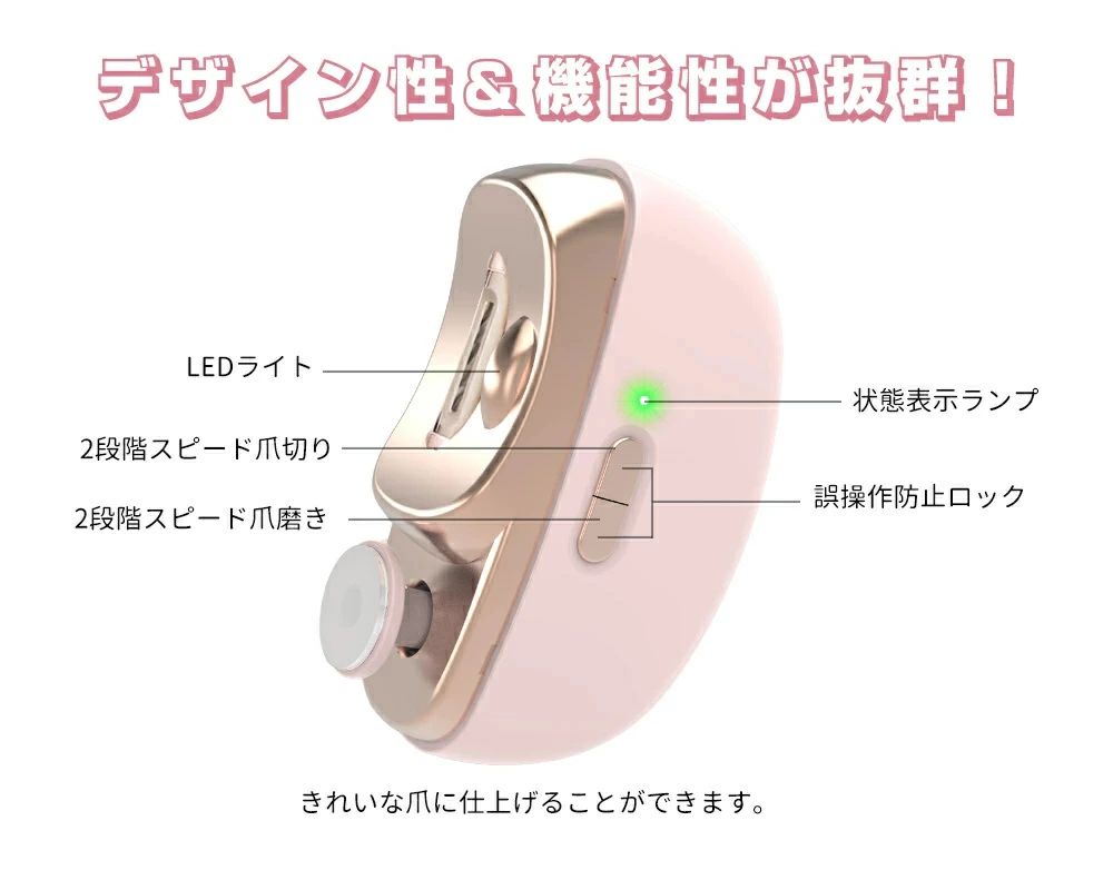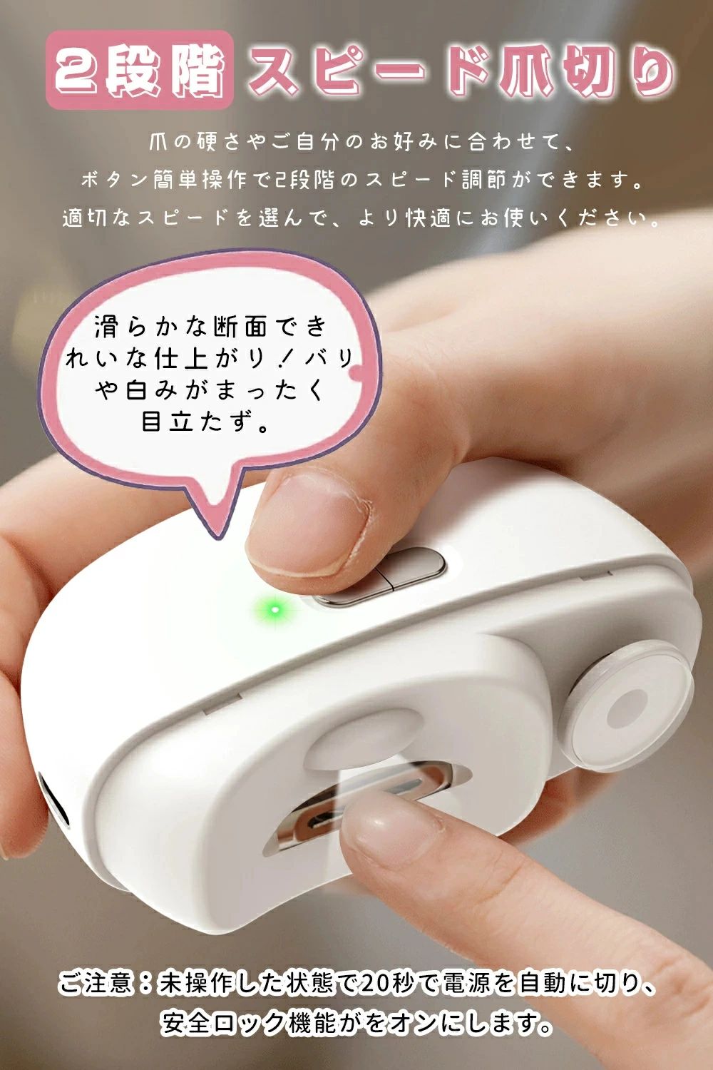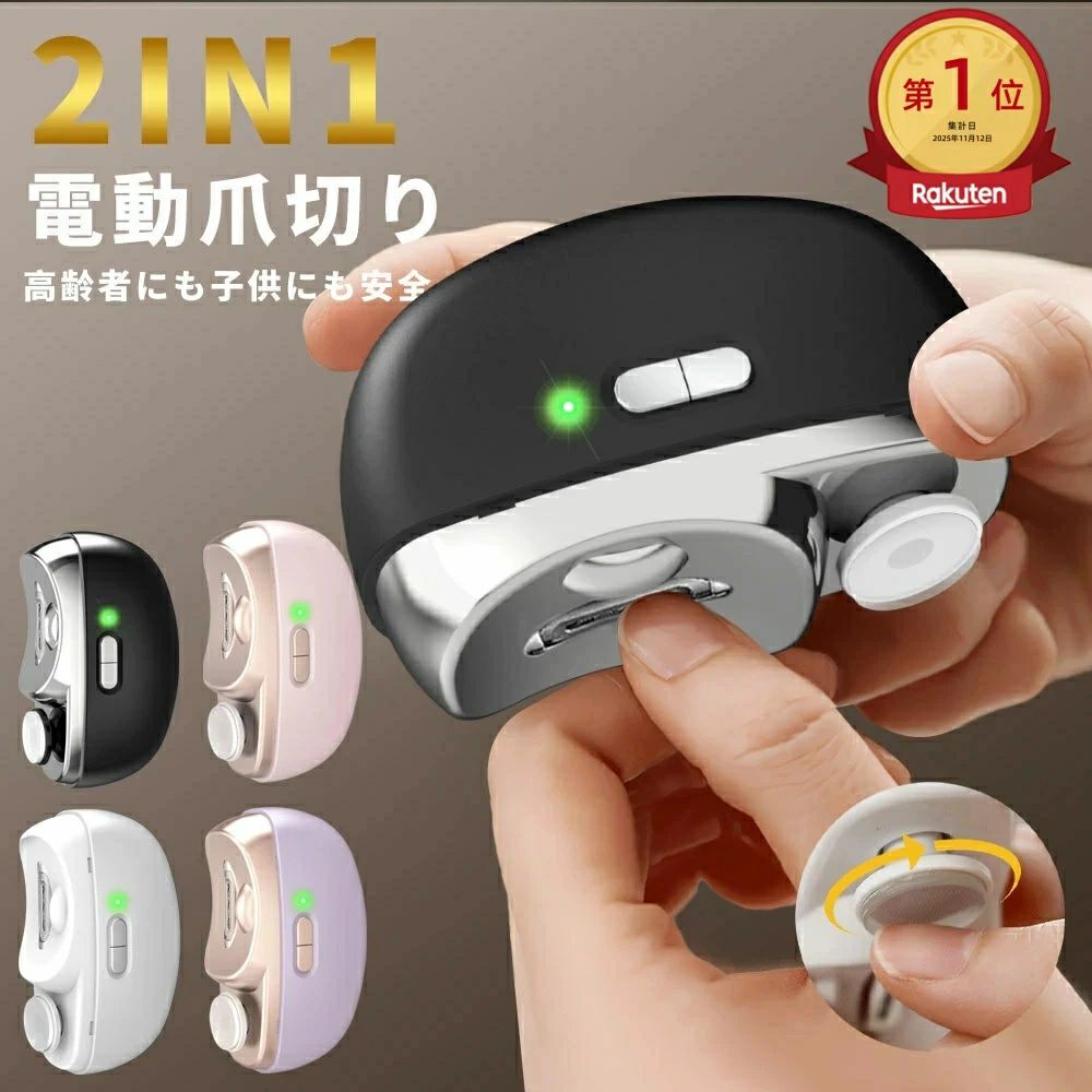 爪切り 電動つめ削り 足の爪 2in1 ホワイト ピンク パープル ブラック
