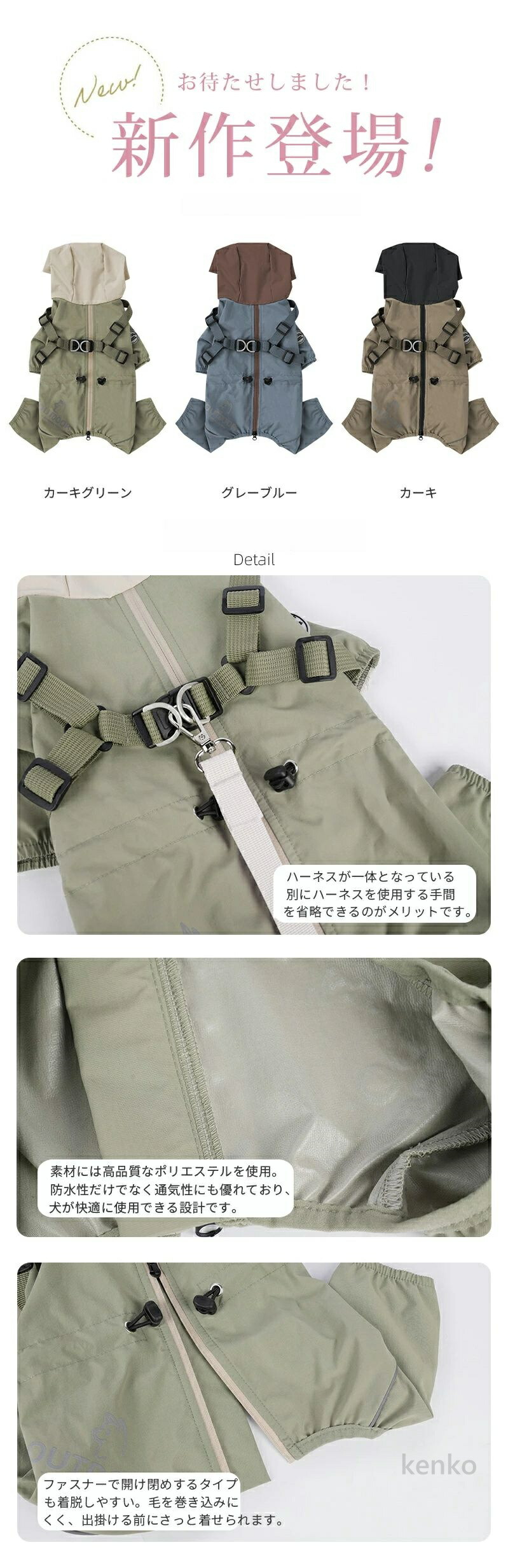 犬 猫 レインコート ハーネス一体型 ペット ペットグッズ 期間限定ポイントUP! 赤茶 ブルー グレー カーキグリーン グレーブルー カーキ S M L XL XXL XXXL