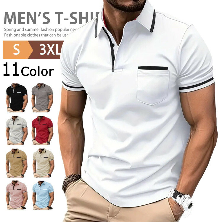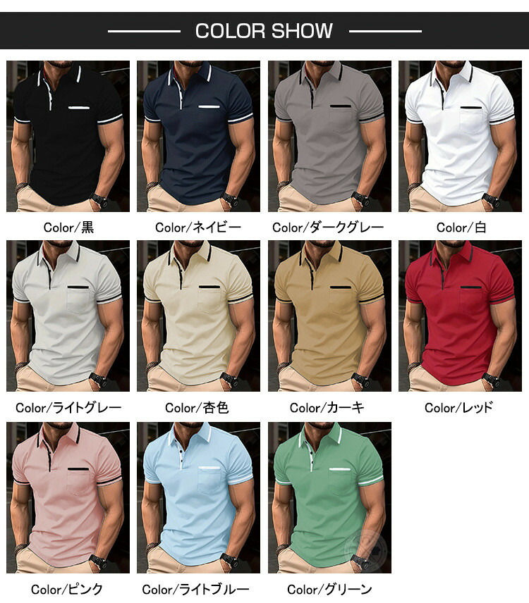 半袖ポロシャツメンズビジネスクールビズ メンズファッション 通販 S M L XL 2XL 3XL 黒 ネイビー ダークグレー 白 ライトグレー 杏色 カーキ レッド ピンク ライトブルー グリーン