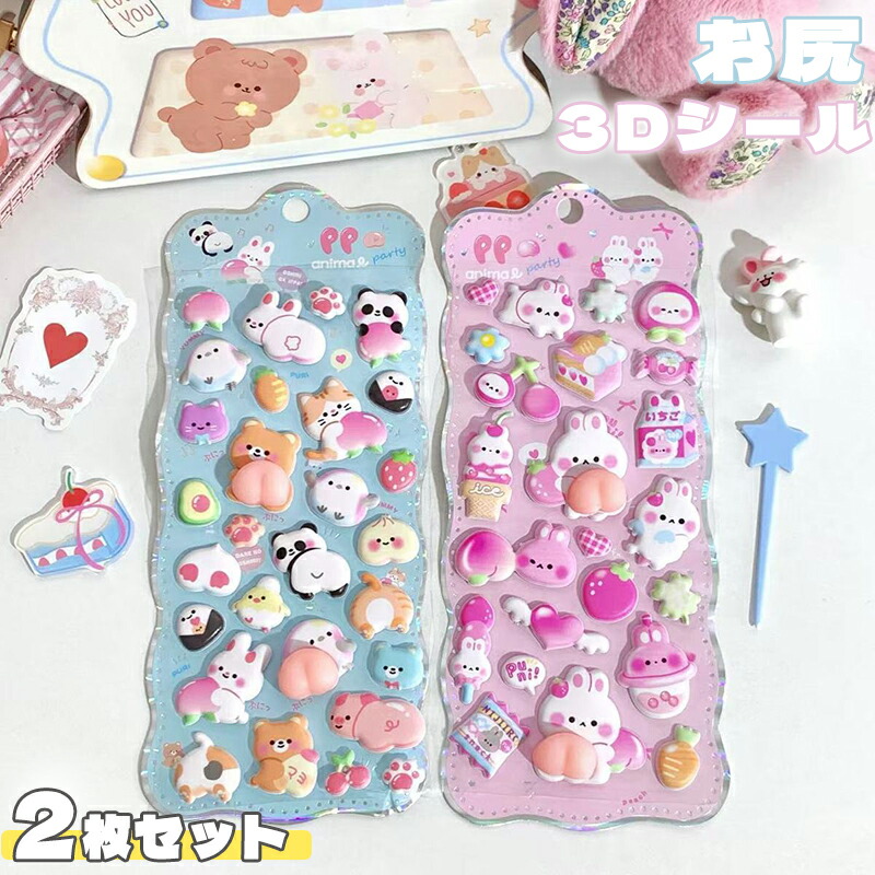 2枚セット ぷにぷに おしりシール ス 文房具 事務用品 ギフトラッピング用品 シール ステッカー 続々登場 タイプA*2枚 タイプB*2枚 タイプA+タイプB