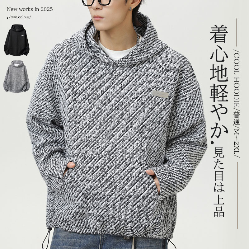 パーカー メンズ おしゃれ 長袖 トレ トップス ニット セーター 豊富 グレー ブラック M L XL 2XL