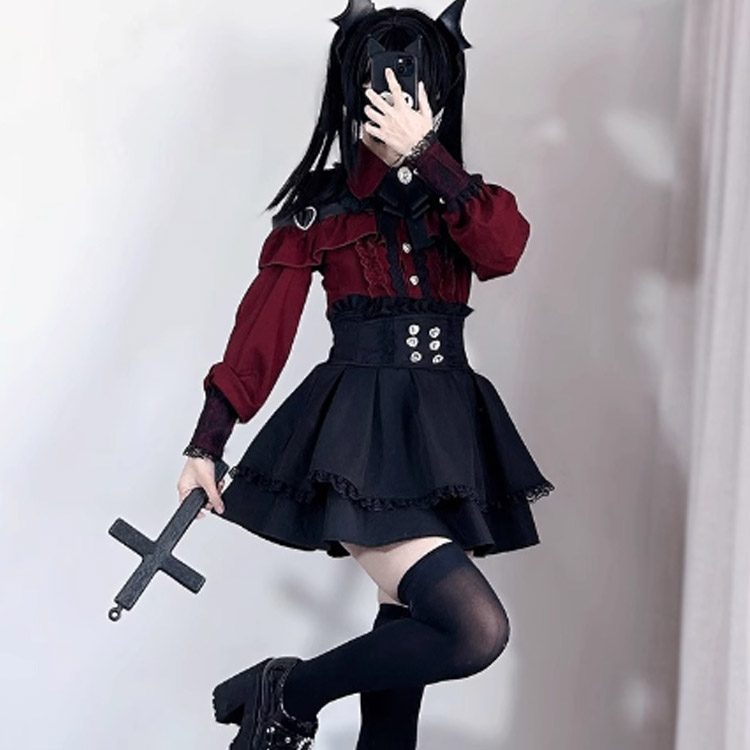 春 ワンピース レディース 病みかわい レディースファッション 豊富 レッド(上下セット) グレーブルー(上下セット) ブラック(上下セット) S M L XL