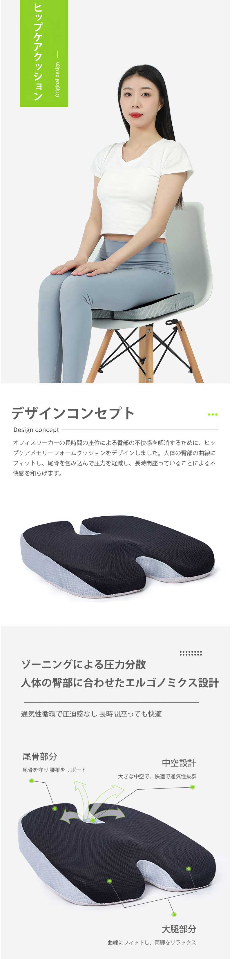 クッション 坐骨神経痛 座布団 骨盤矯 ブラック グレー