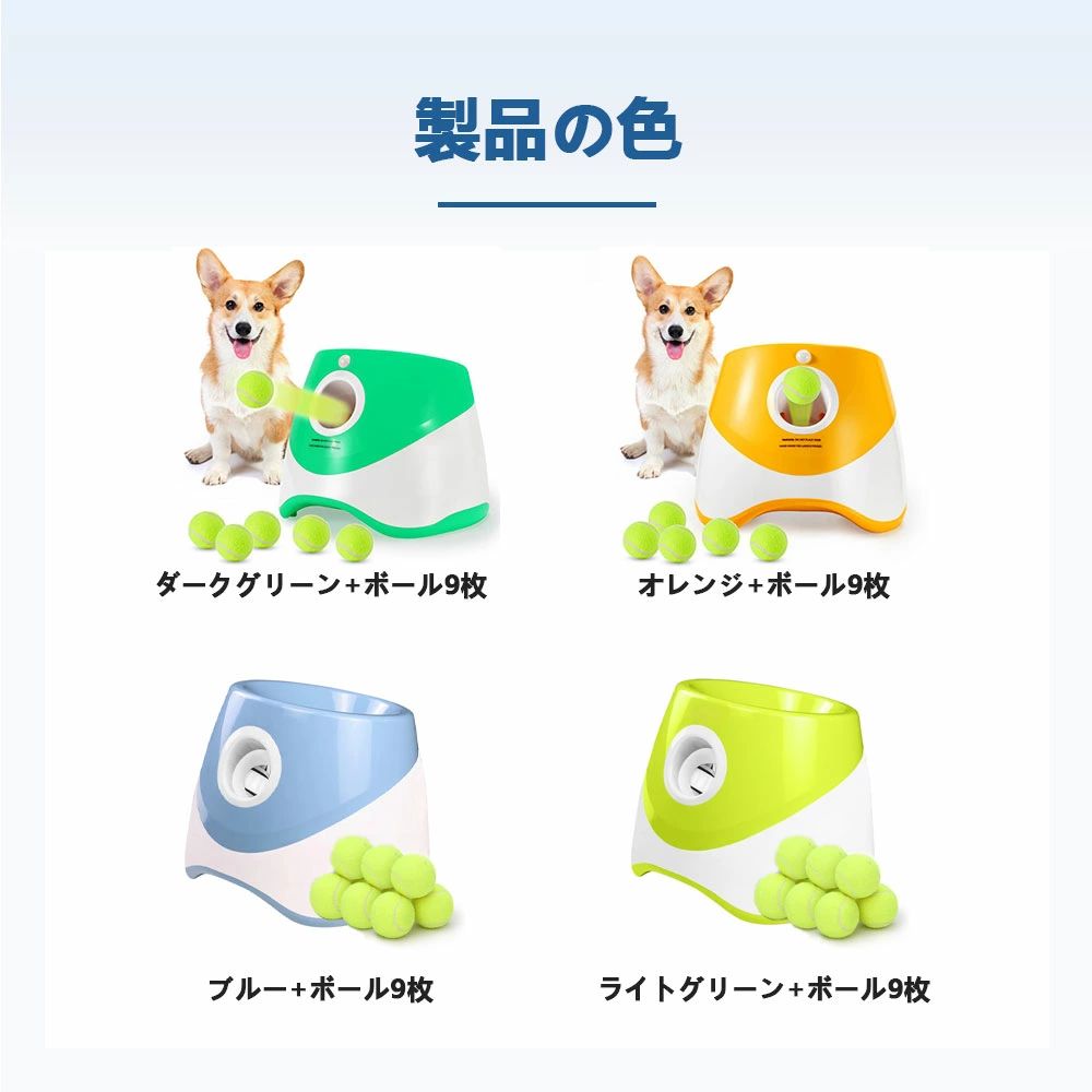 ペットおもちゃ 自動 自動ボールランチ 犬用品 おもちゃ ボール 豊富な品揃え ダークグリーン+ボール9枚 ブルー+ボール9枚 オレンジ+ボール9枚 ライトグリーン+ボール9枚