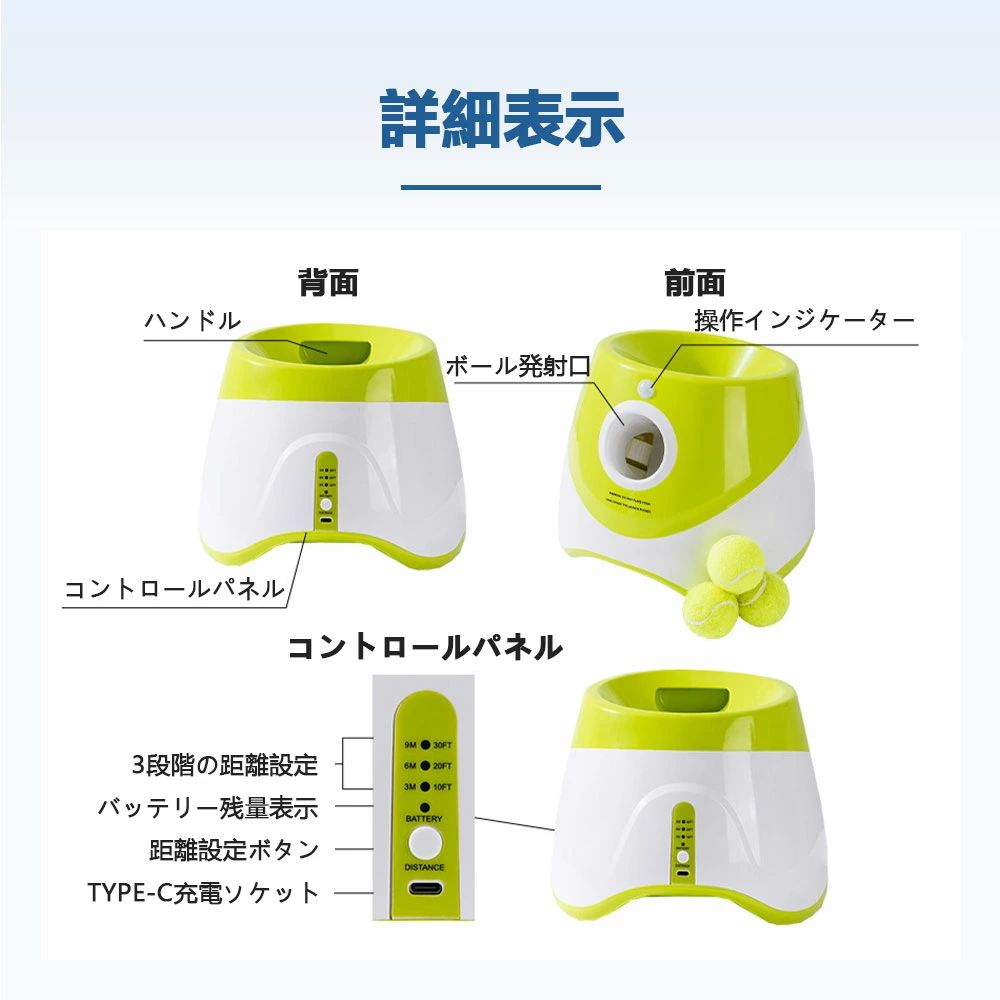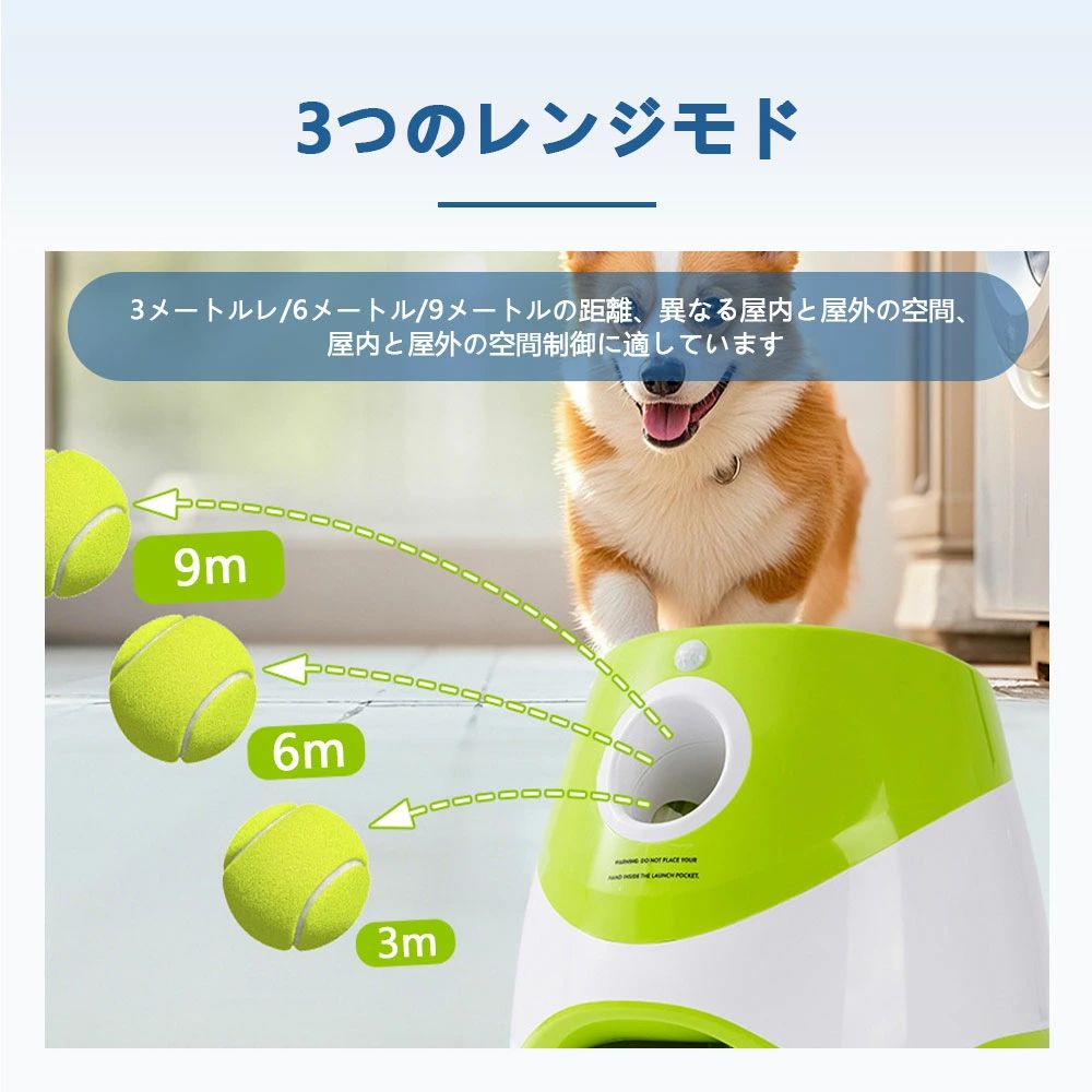 ペットおもちゃ 自動 自動ボールランチャー おもちゃ ペットボール投げ機 犬 ボール ボール9個付き 屋内用 3モード 犬用ボール ランチャー 投球機 遠距離グリ ボールランチャーペット用