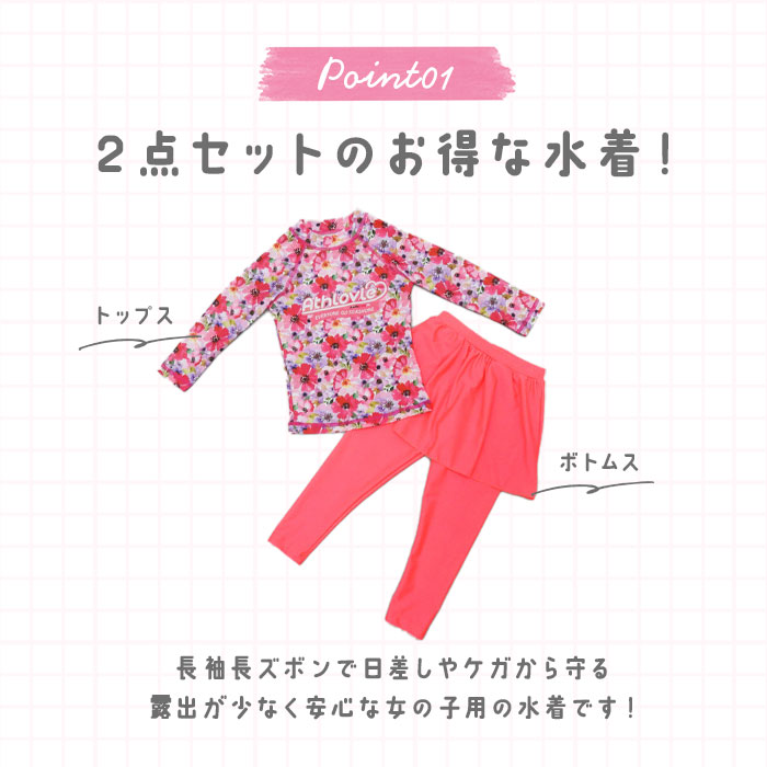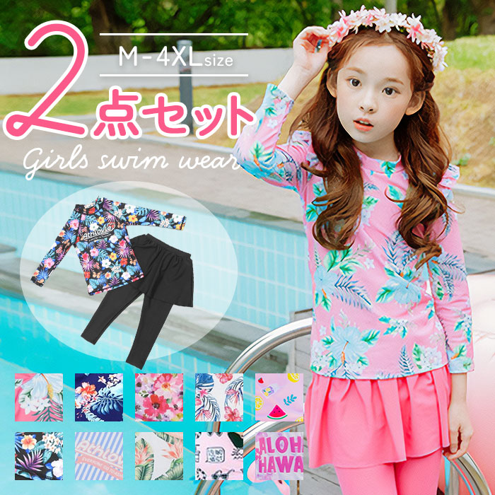 水着 女の子 セパレート 通販 上下セット 上下 2点セット ラッシュガード 長袖 スカッツ キッズ 子供 子供水着 かわいい 可愛い 日焼け防止 女の子水着 ジュニア水着 水遊び プール ジュニア
