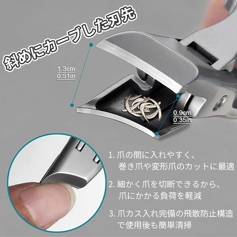 厚い爪 巻爪 斜め刃 爪キリ 飛び散り ブラック シルバー